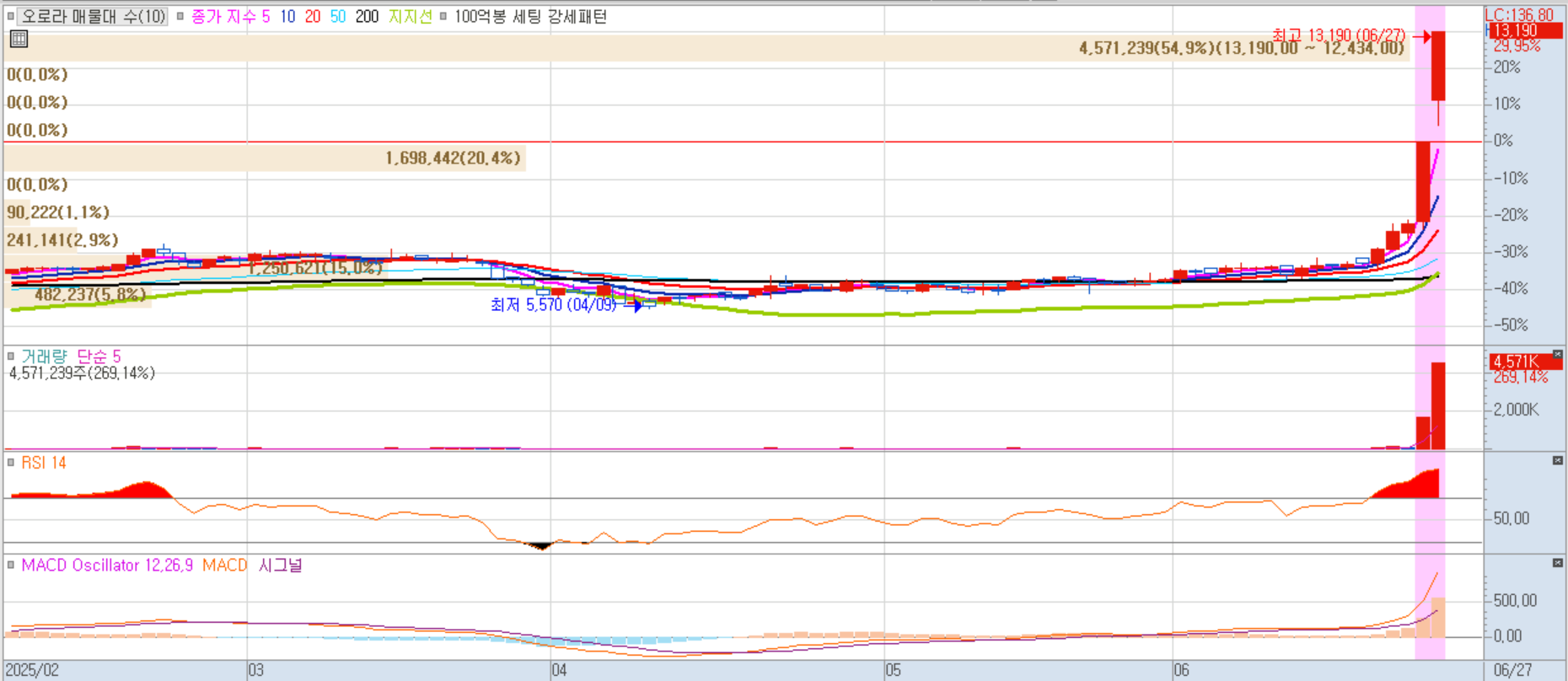 오로라는 장중 급등으로 한국거래소로부터 현저한 시황변동 조회공시를 요구받았습니다. 아직 명확한 호재는 없으나, 시장에서는 기대감이 형성된 상황입니다.