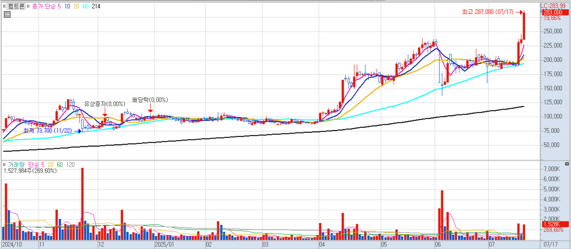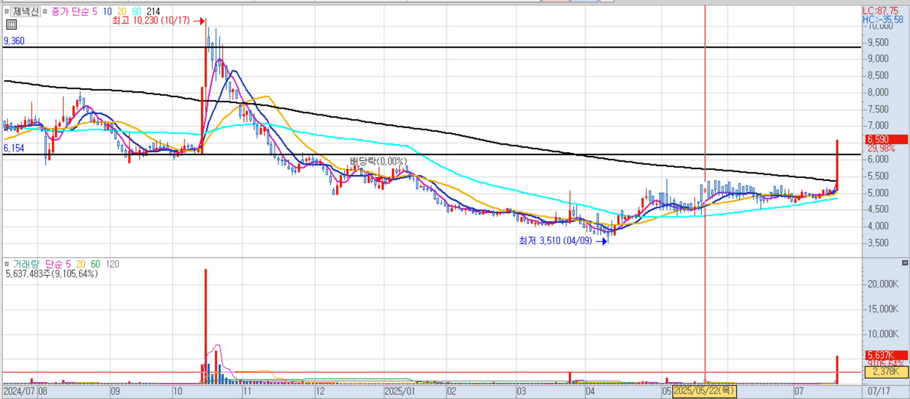 제넥신 일봉차트 이미지