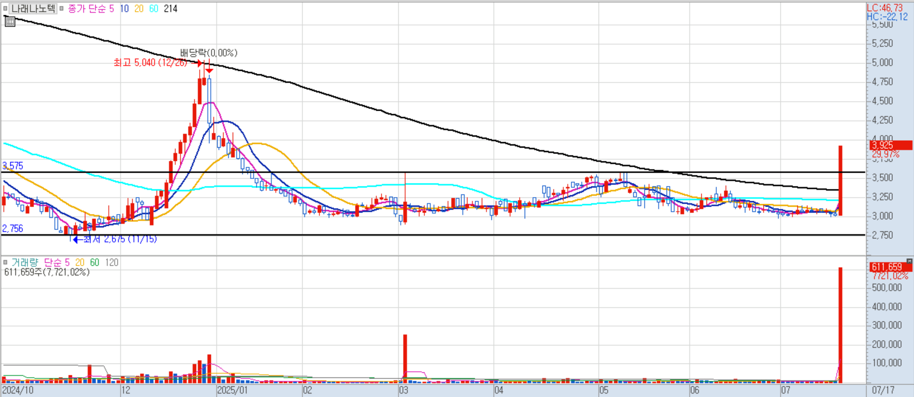 나래나노텍 일봉차트 이미지