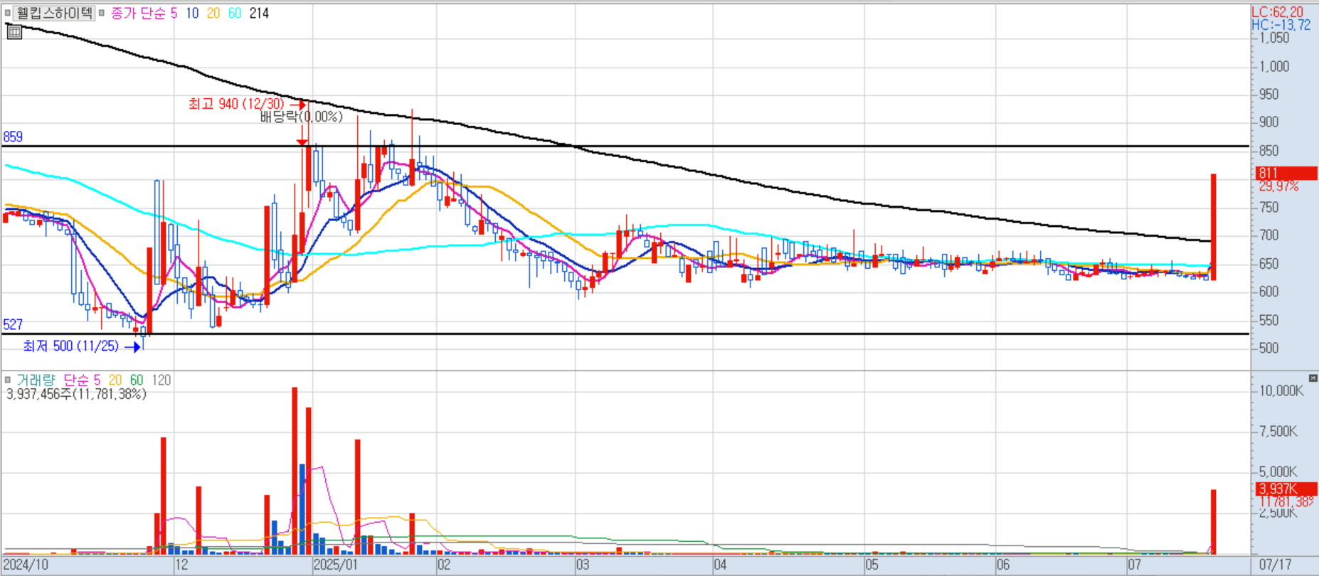 웰킵스하이텍 일봉차트 이미지