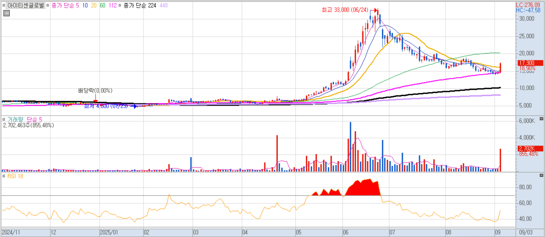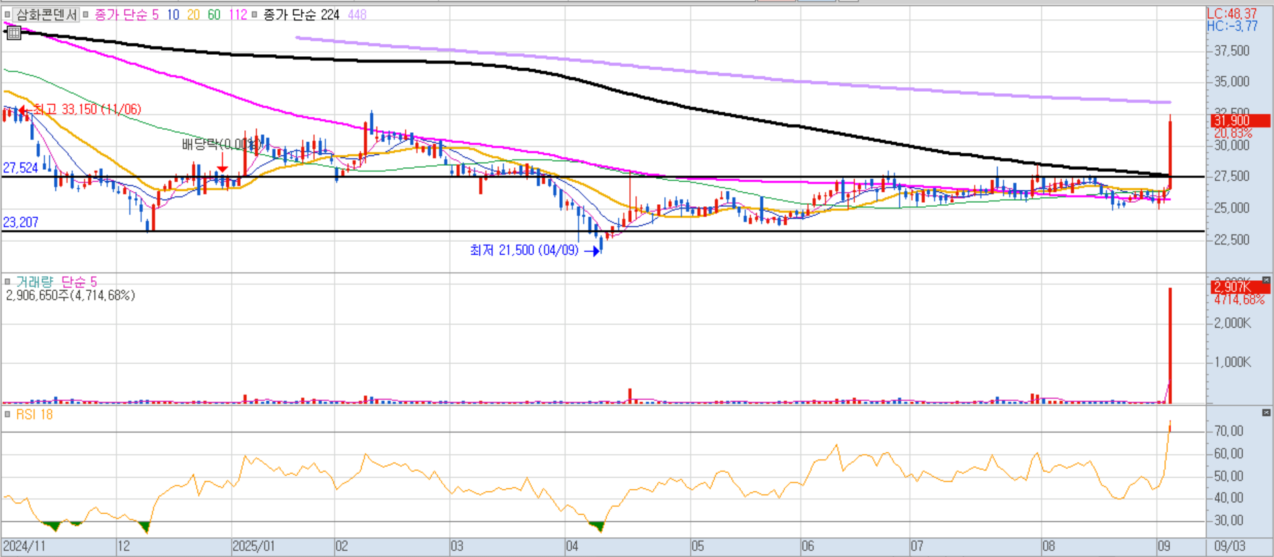 정리매매로 상한가 기록. 정리매매는 상장폐지 확정 이후 투자자가 보유 주식을 처분할 수 있도록 유예기간을 주는 제도이며, 가격 제한폭이 없어 투기성 거래가 빈번함.
