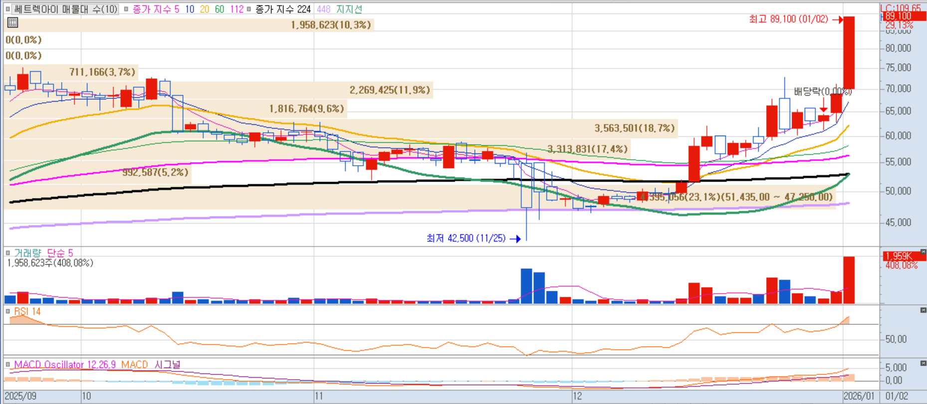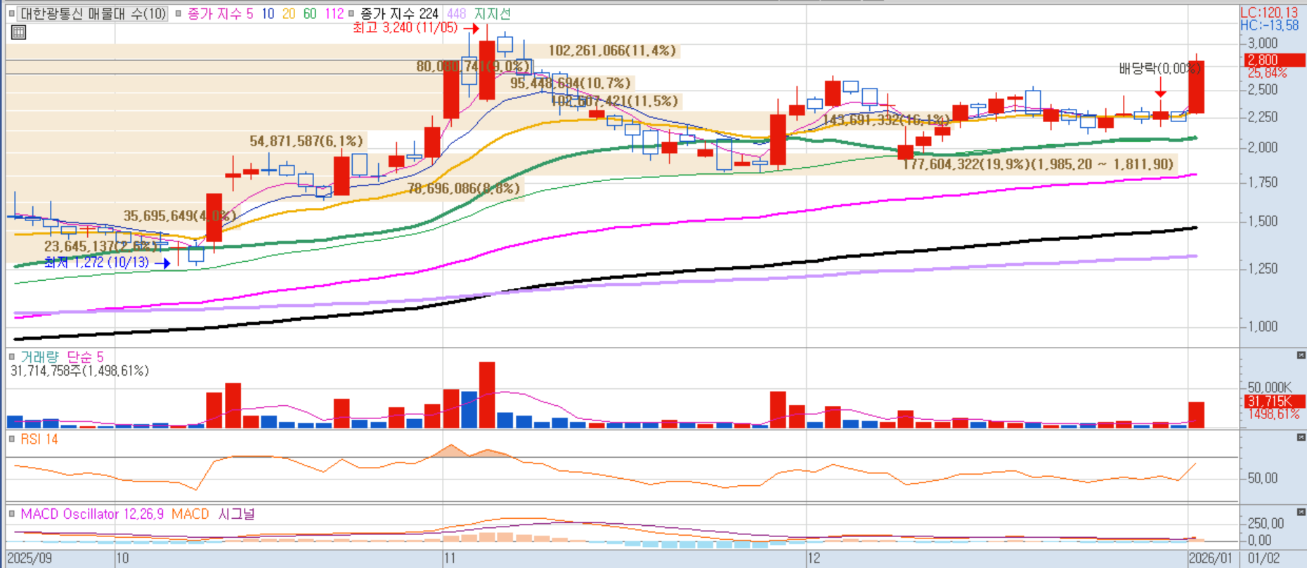 2025년 영업이익 흑자 전환 전망과 위성 데이터 수출 확대라는 구조적 펀더멘털 변화가 주가에 긍정적으로 작용한 것으로 분석됩니다.
