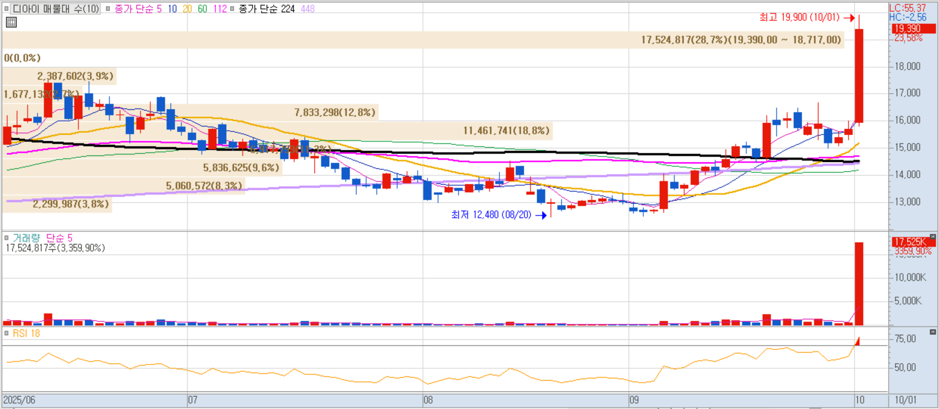 DDR5 매출 확대와 3분기 실적 개선 기대감으로 주가 강세.