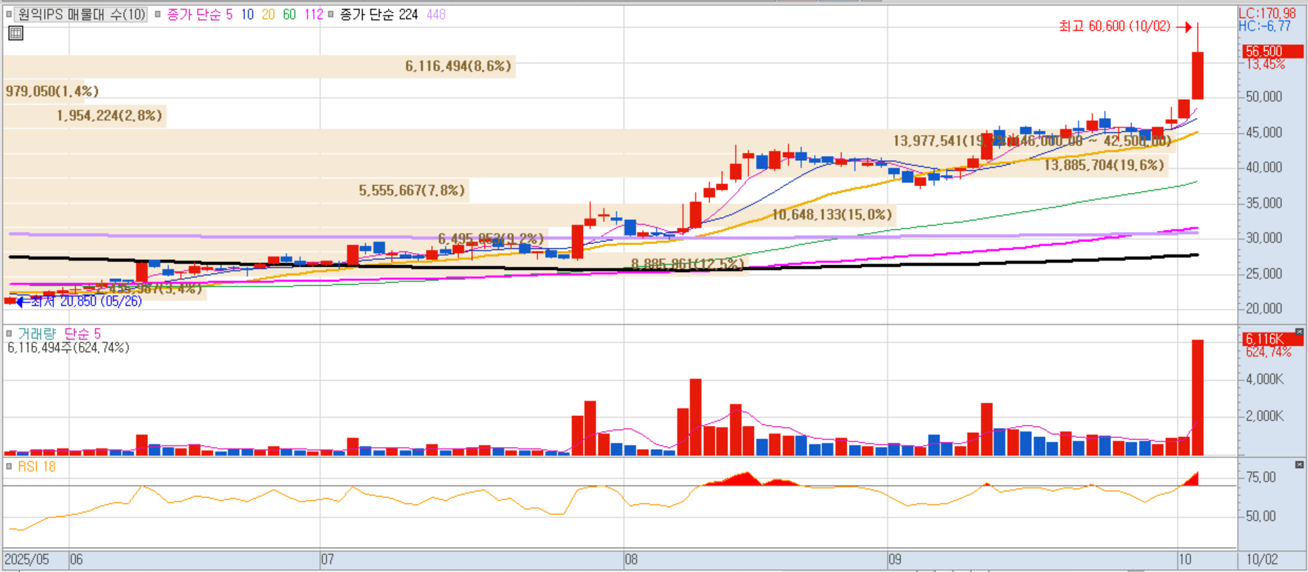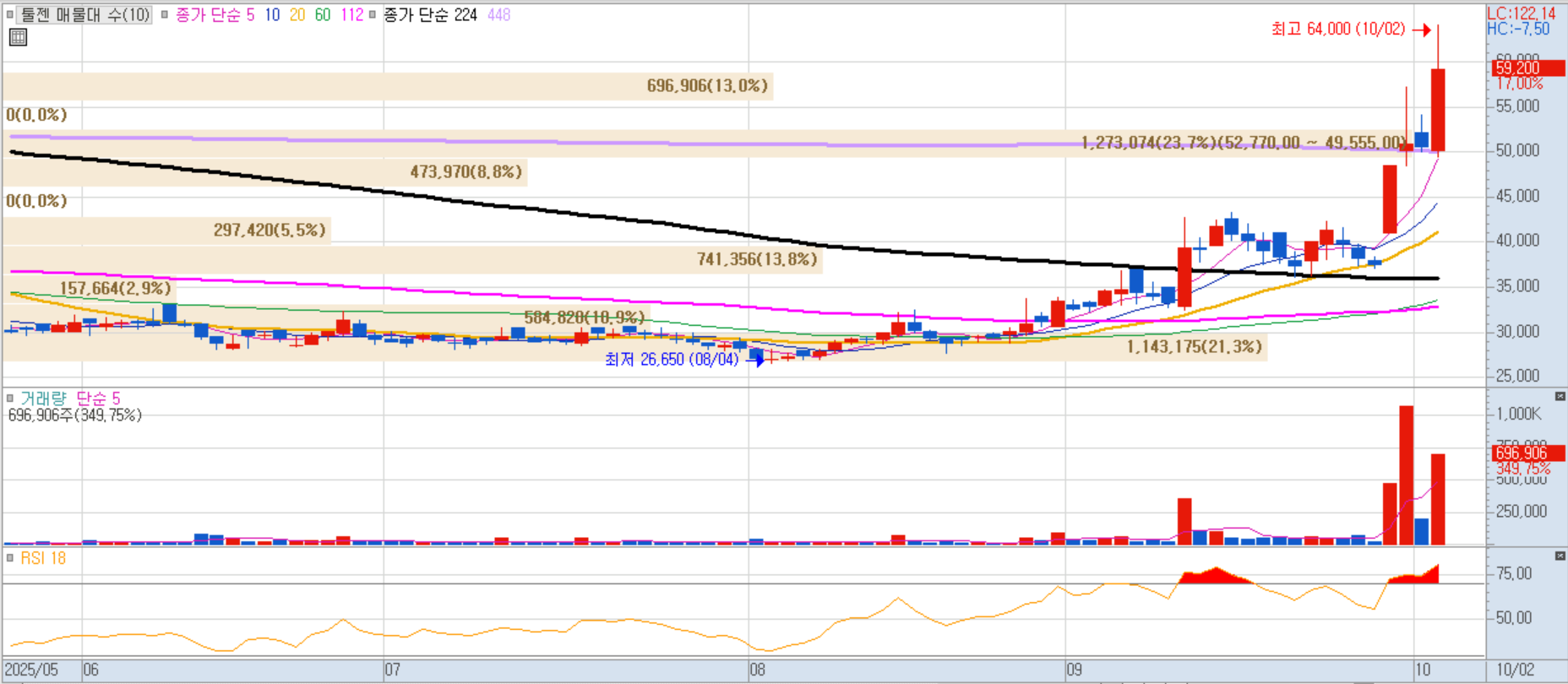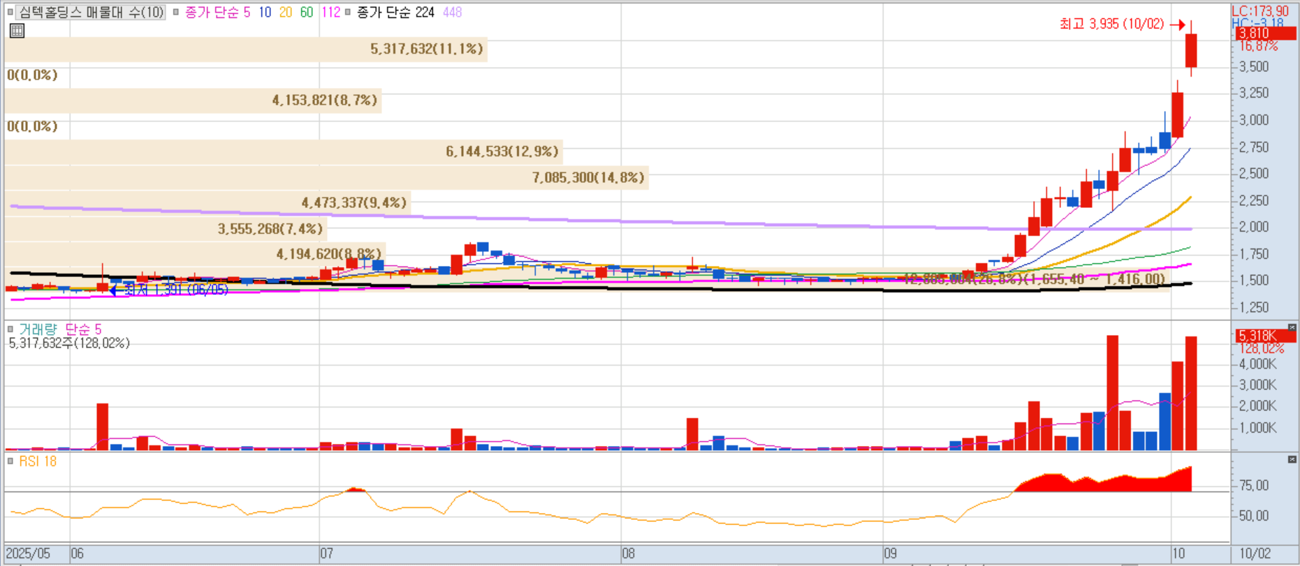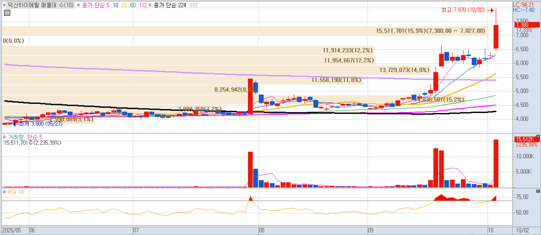 모바일 DRAM/Flash 팹리스. 반도체 밸류체인 전반 급등 흐름에 동조 상승.