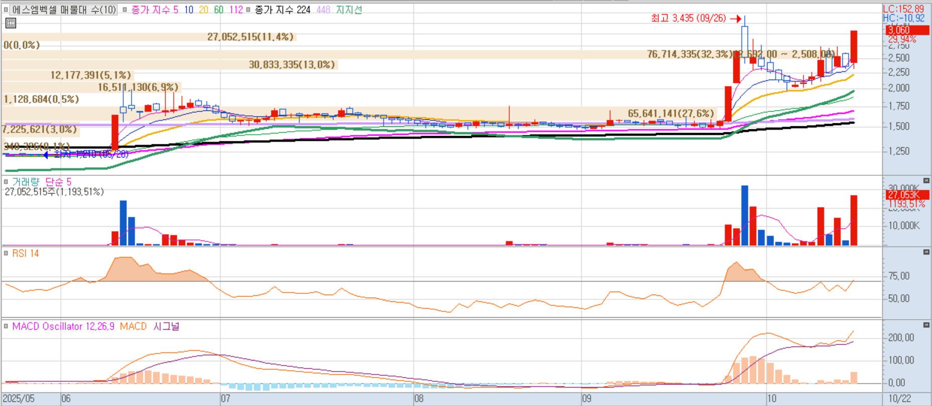 공시나 뉴스 없이 급등세를 기록했습니다.