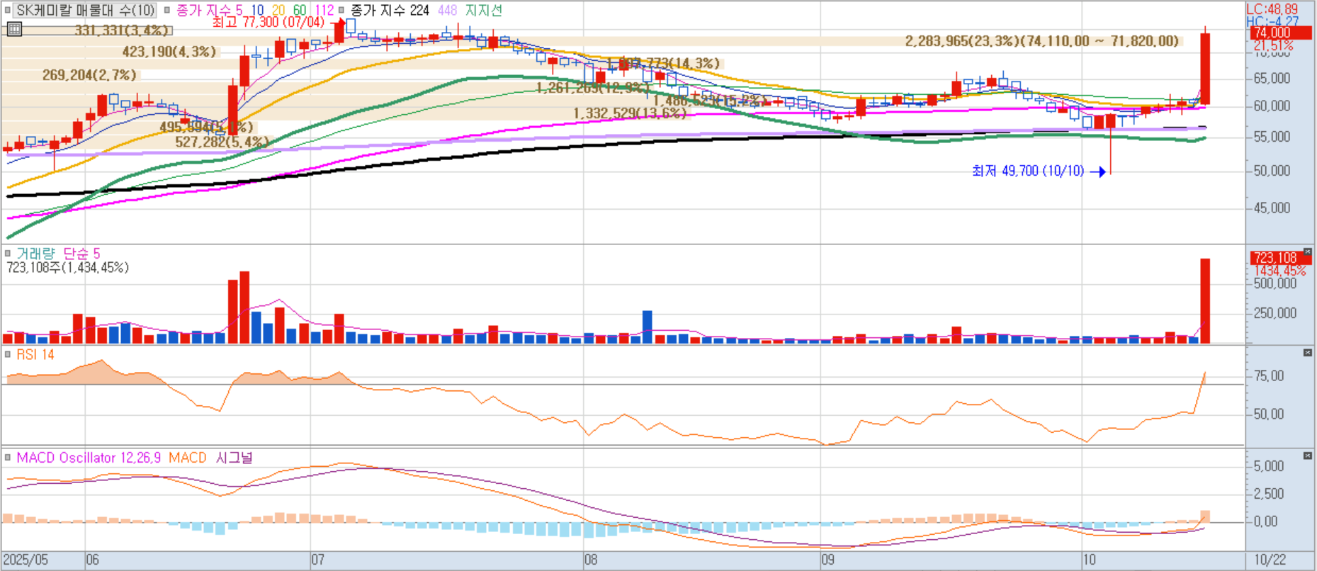 10월 22일 국내 증시는 2차전지, 자동차, 화학, 보안 산업 섹터가 시장을 주도했습니다.