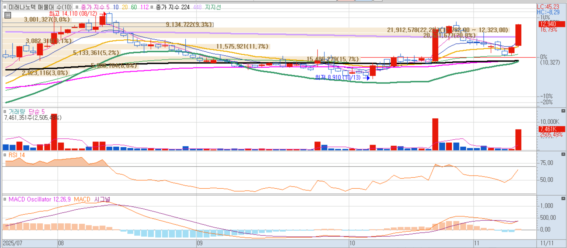 미래나노텍 일봉차트 이미지