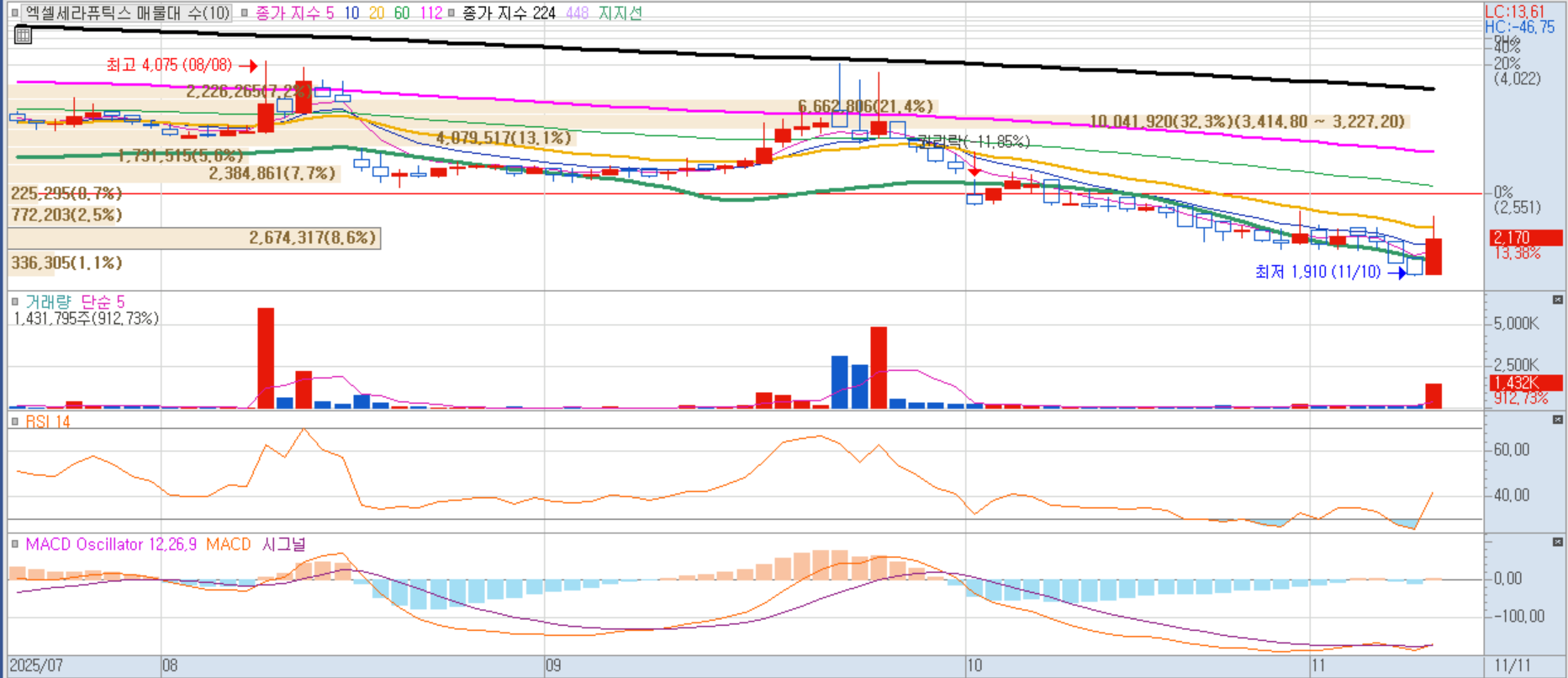 엑셀세라퓨틱스 일봉차트 이미지