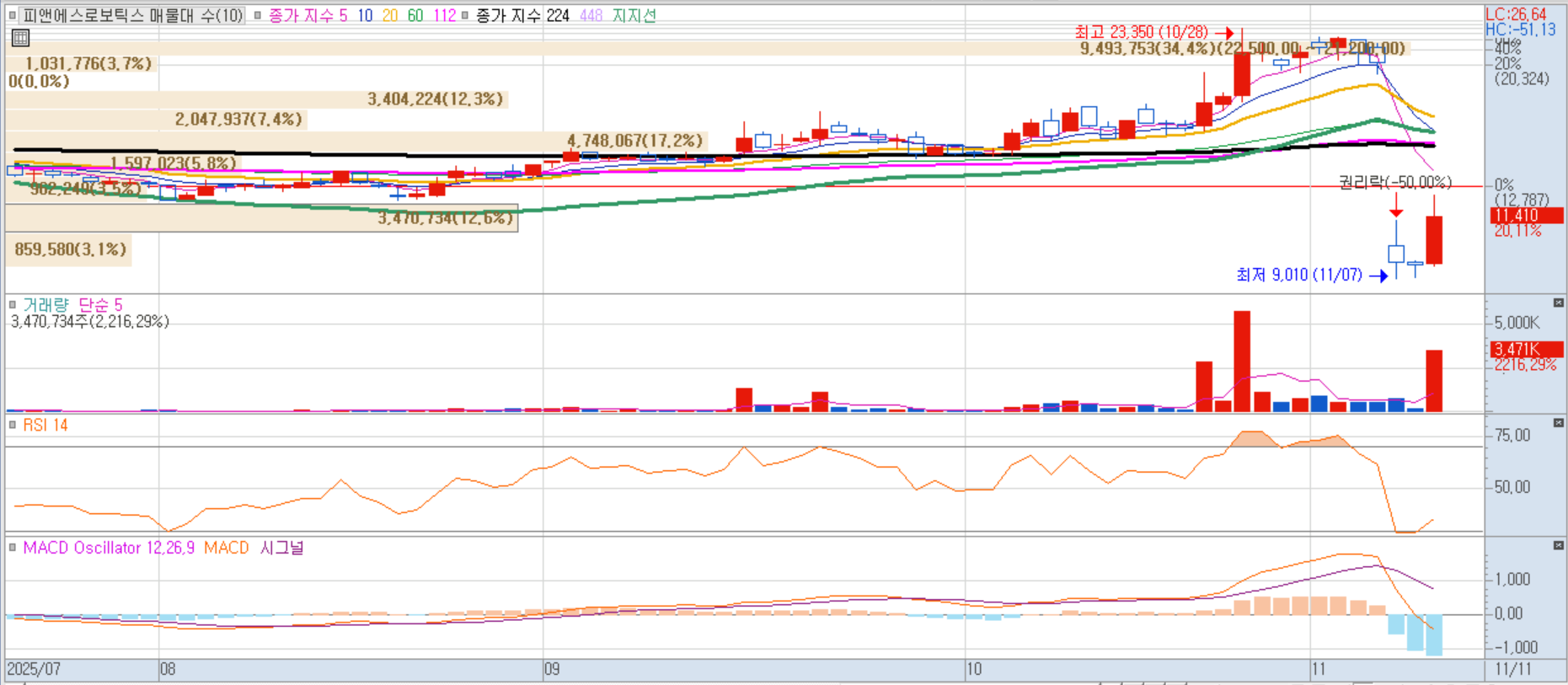 피앤에스로보틱스 일봉차트 이미지