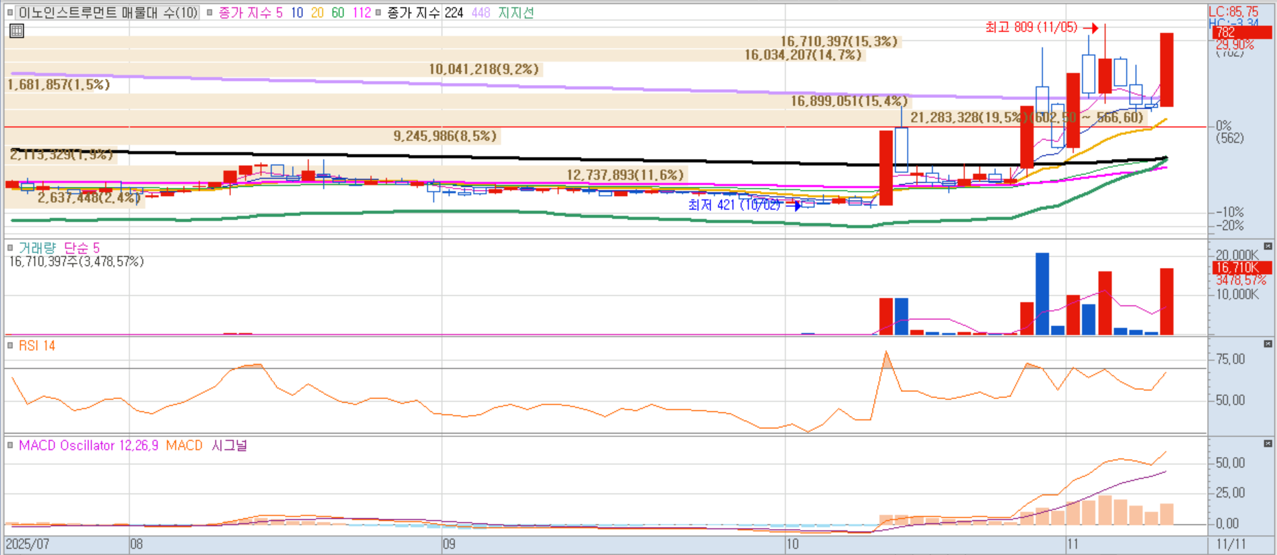 이노인스트루먼트 일봉차트 이미지