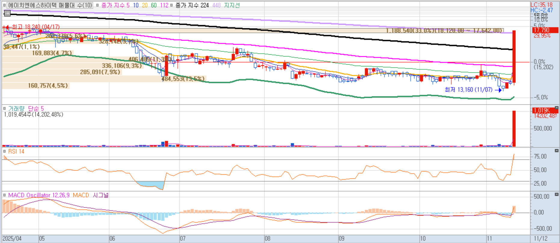 에이치엔에스하이텍보통주 소각 결정 소식에 주가가 상승했습니다.
