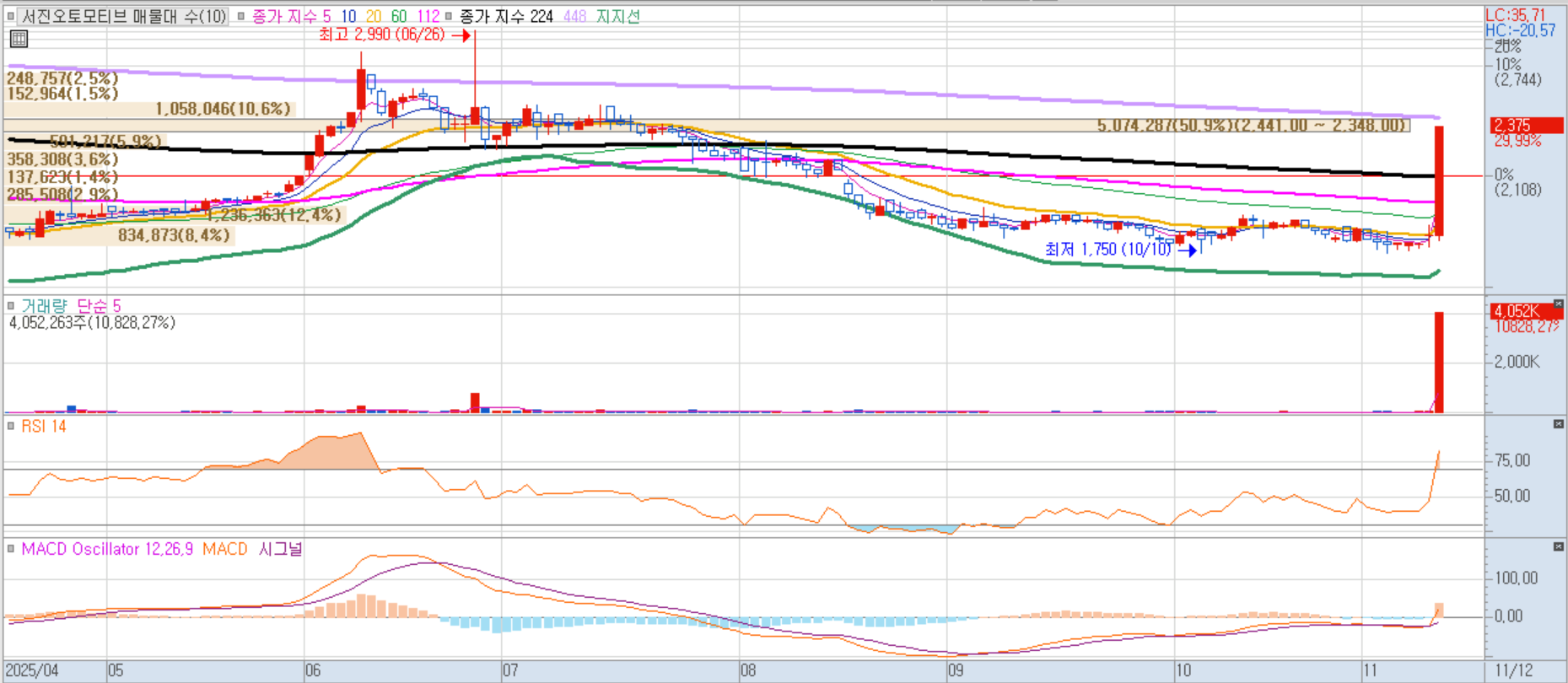 서진오토모티브로브로스와 휴머노이드 로봇 공동개발 협력 소식에 강세를 보였습니다.