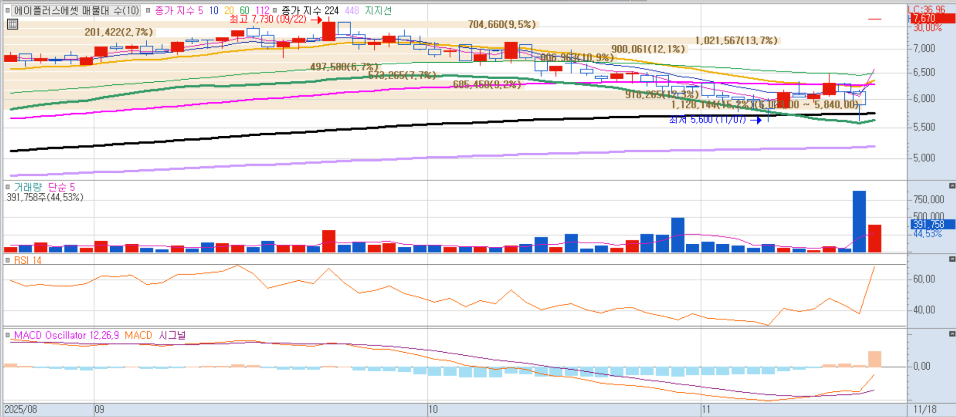 AI 기반 화재 감지 솔루션 기업. 겨울철 화재 경보 + AI 소방 관련주 부각으로 강세.
