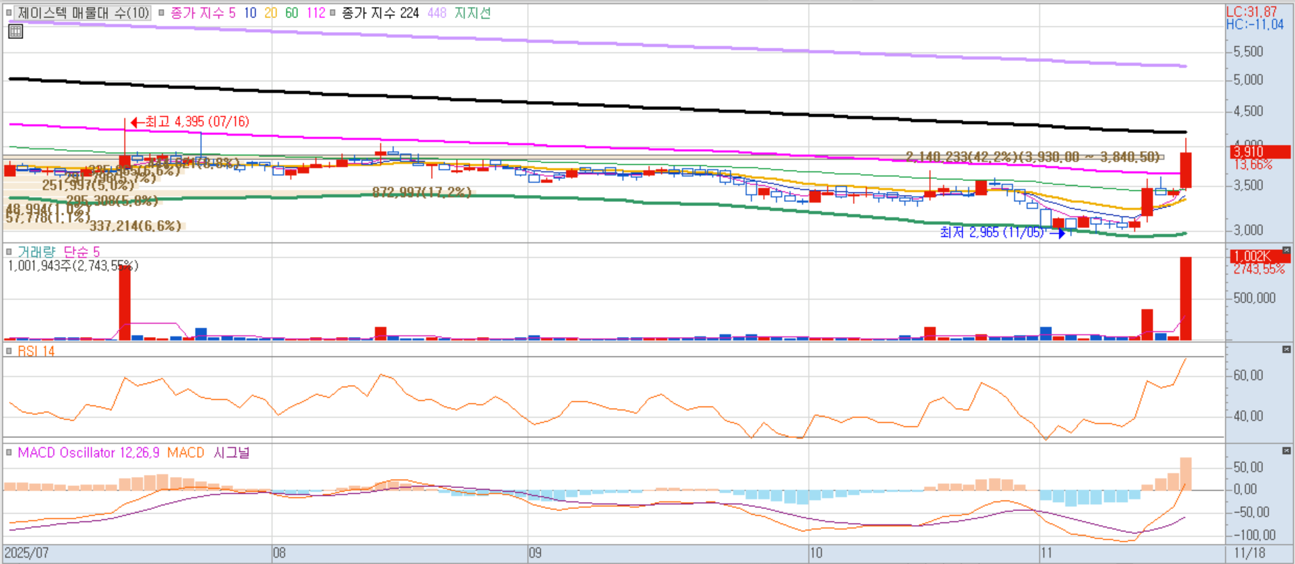 삼성전자 메모리 가격 인상 + 워런 버핏의 알파벳 투자 영향으로 반도체·AI 데이터센터 수요 급증 관련주 전반 강세. 제이스텍은 메모리칩 시장 반등의 직접 수혜로 평가.