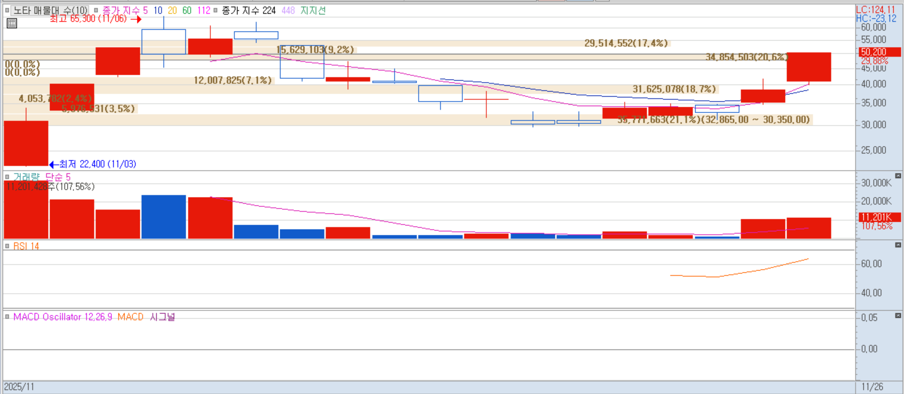 인공지능 전문기업 노타가 삼성전자와 기술 공급 계약 체결 소식에 강세. AI 모델 경량화·최적화 분야의 독보적 기술력 재조명.