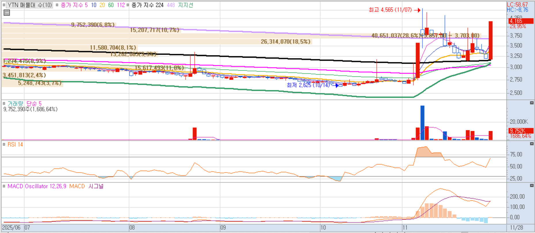 법원이 방송통신위원회의 YTN 최대주주 변경 승인 처분을 취소해야 한다고 판단. 경영권 구조 변화 가능성이 다시 부각되며 강한 매수세 유입.