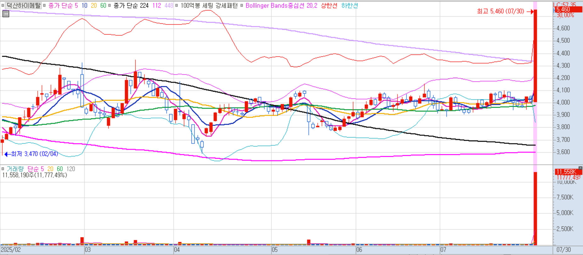 덕산하이메탈 일봉차트 이미지