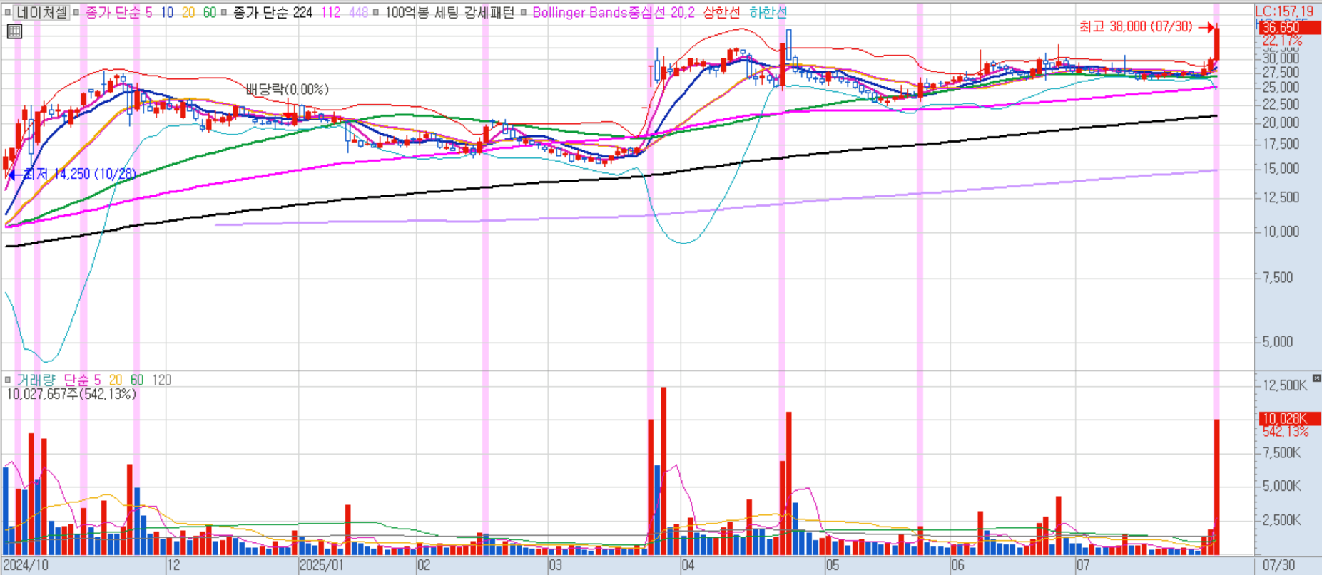 네이처셀 일봉차트 이미지