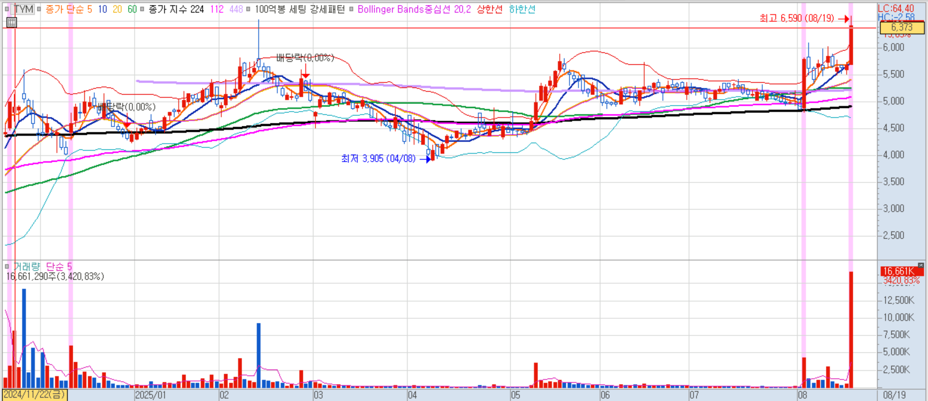세무당국의 1100억 원대 부가가치세 추징 처분 중 290억원 집행정지 승소 소식으로 재무적 불확실성이 해소되며 반등세를 보였습니다. 시장 신뢰 회복에 긍정적 영향을 주는 뉴스였습니다.