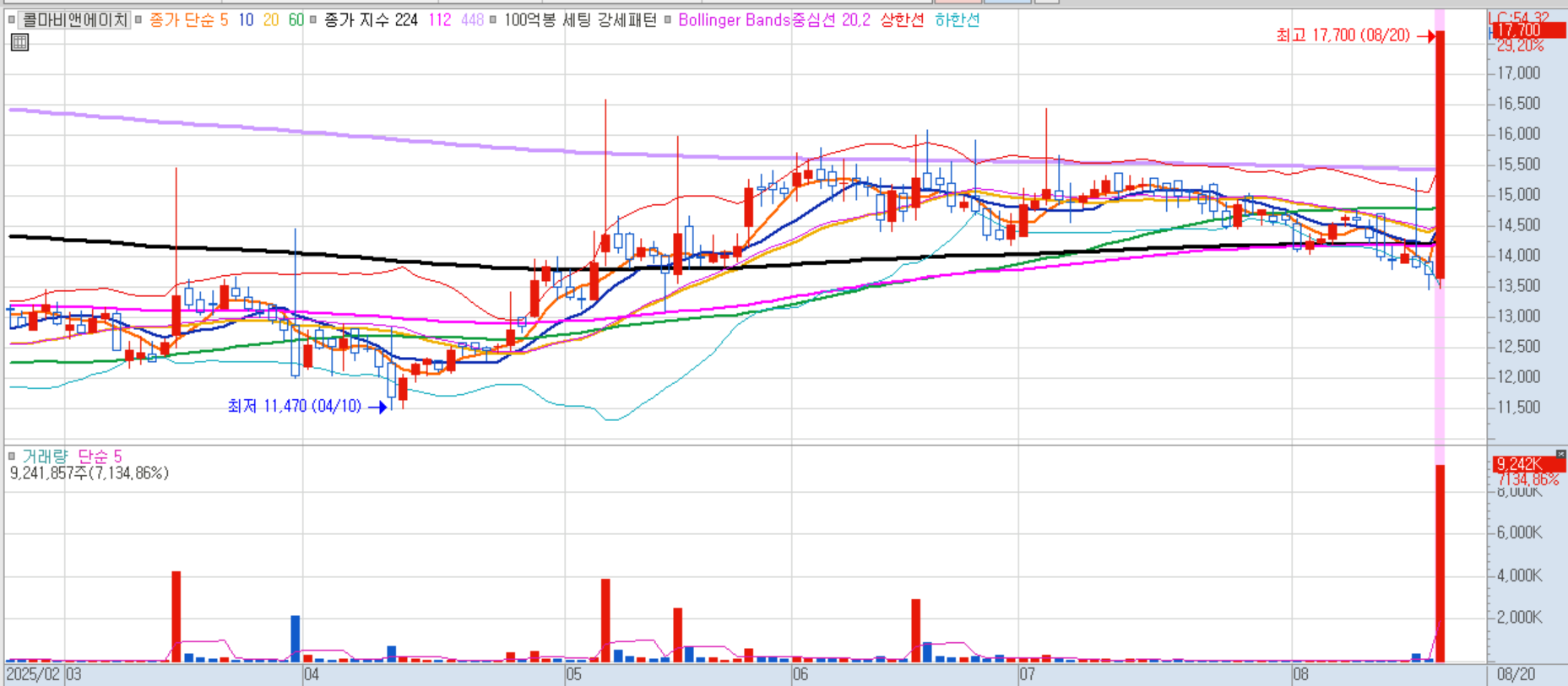 콜마비엔에이치 일봉차트 이미지