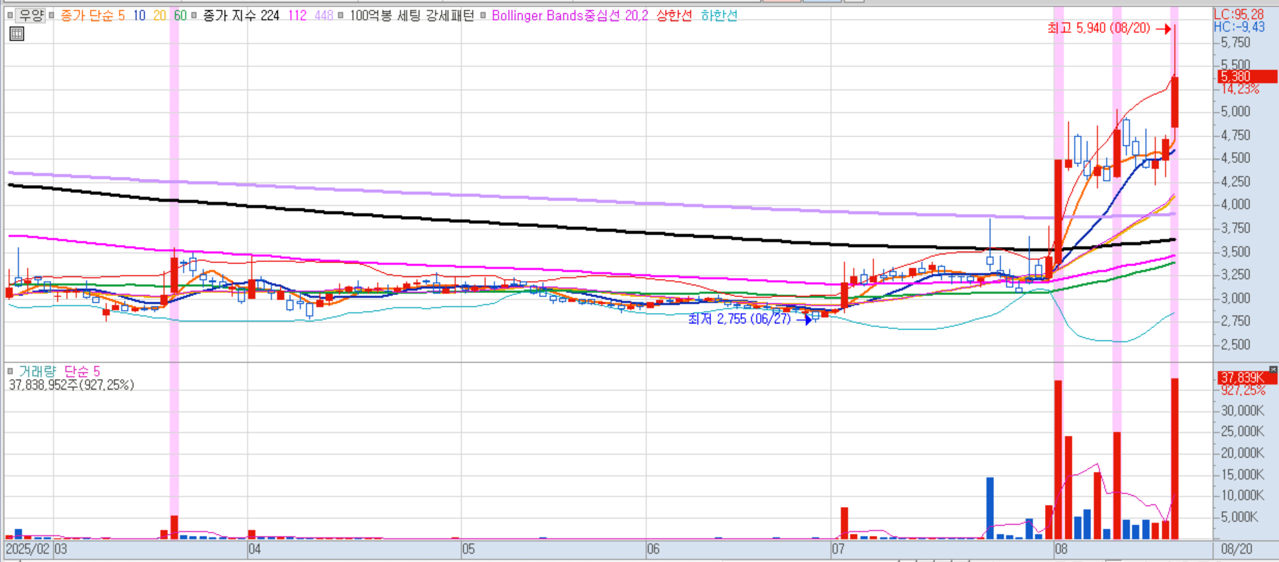 우양 일봉차트 이미지