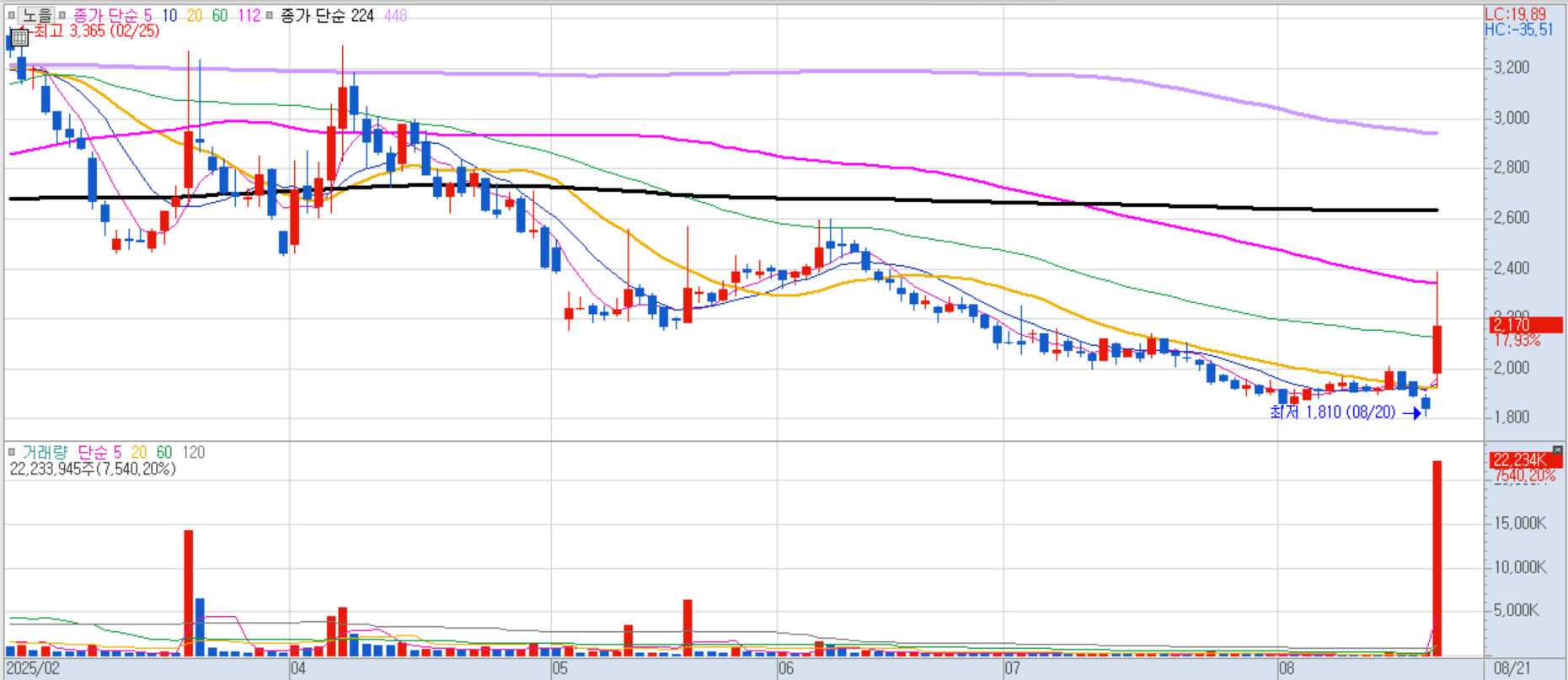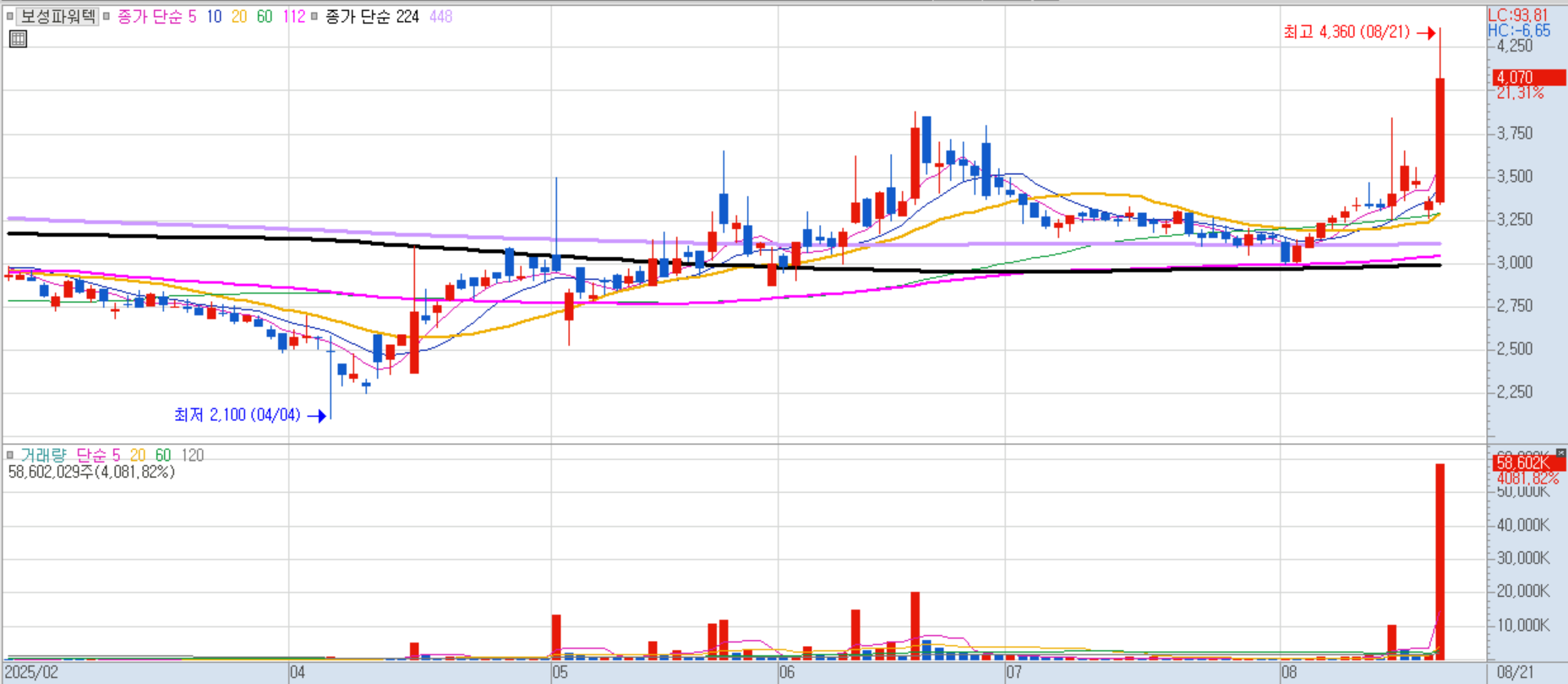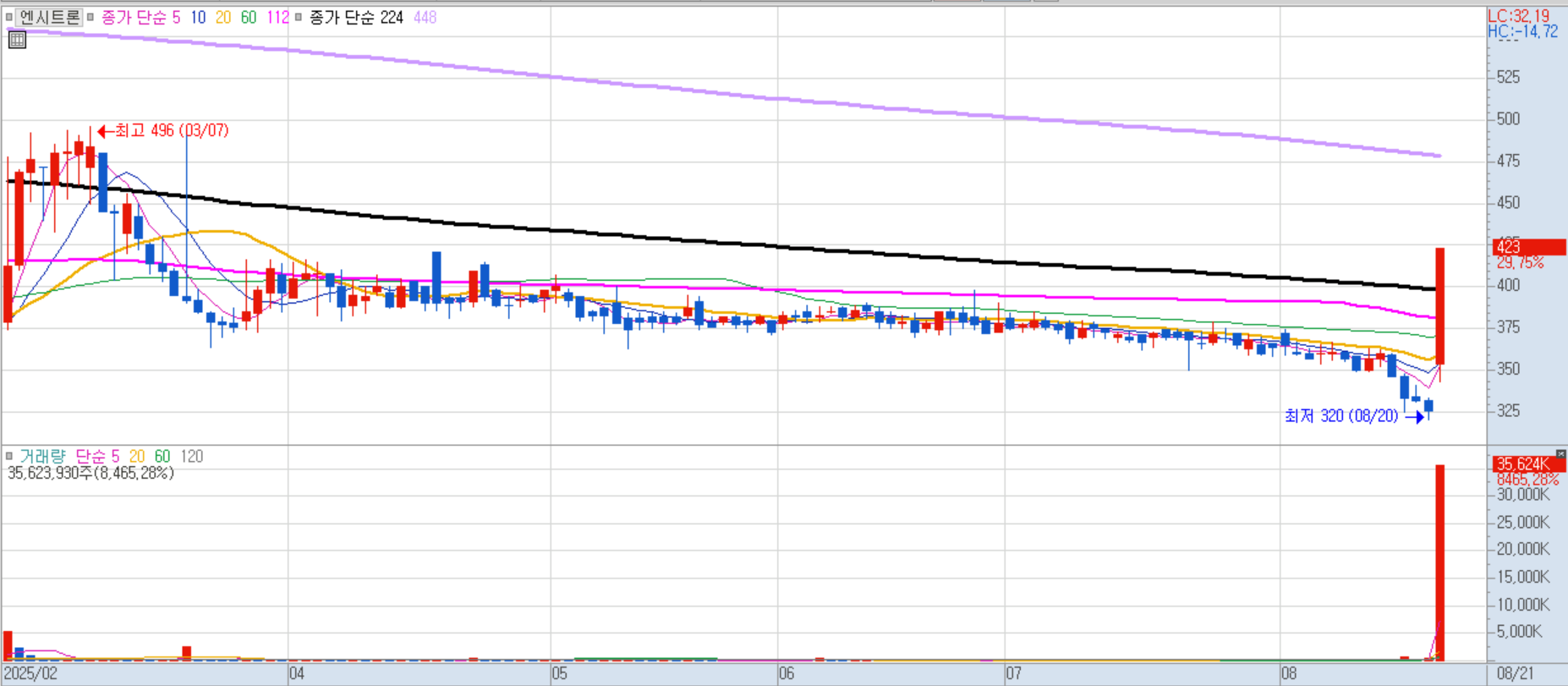 올 상반기 매출 2,960억 원, 영업이익 625억 원으로 뚜렷한 실적 개선세가 주가에 반영되었습니다.