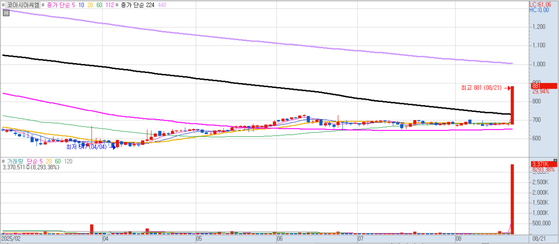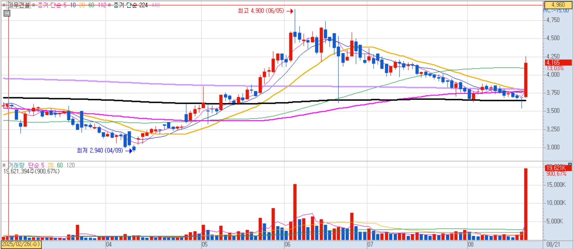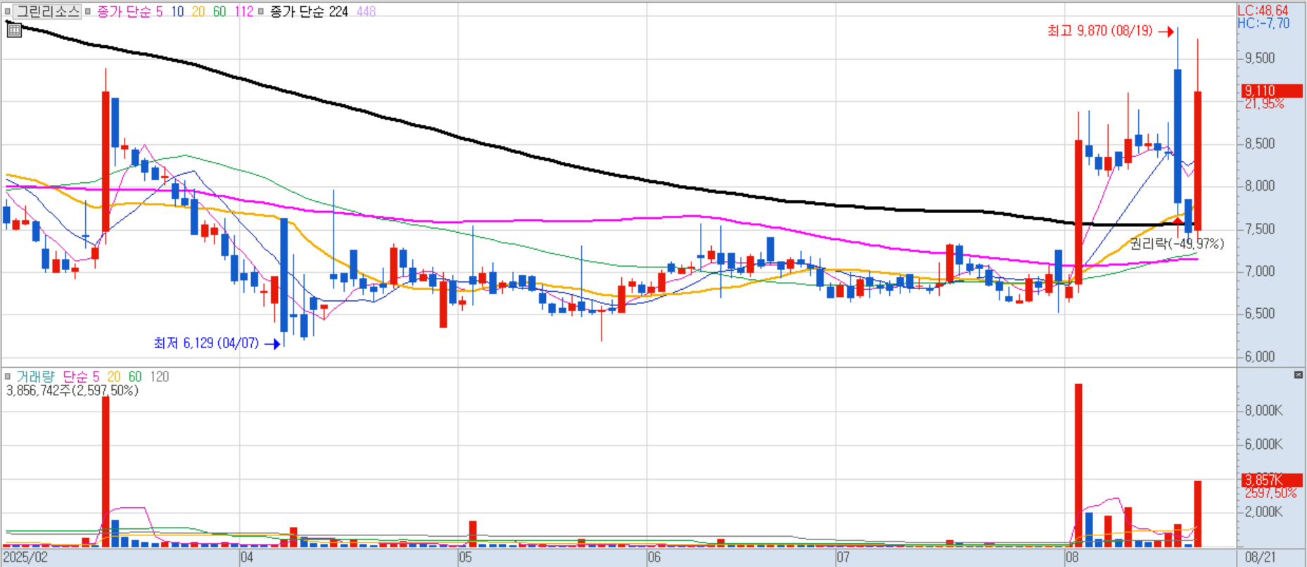 올 상반기 매출 2,960억 원, 영업이익 625억 원으로 뚜렷한 실적 개선세가 주가에 반영되었습니다.