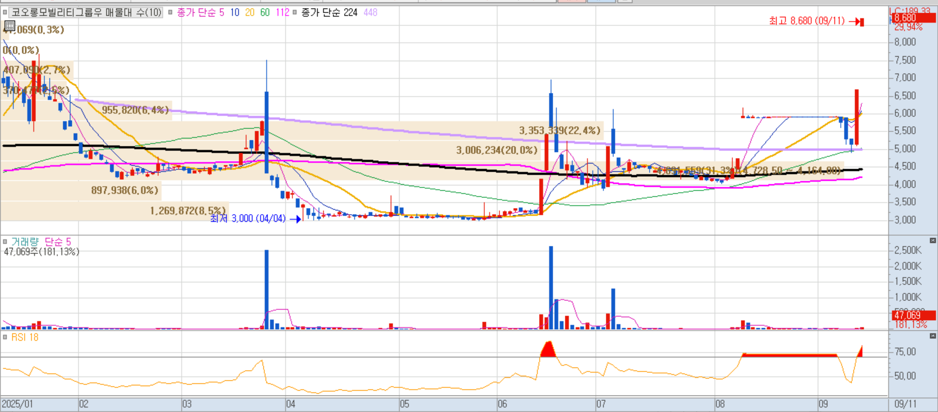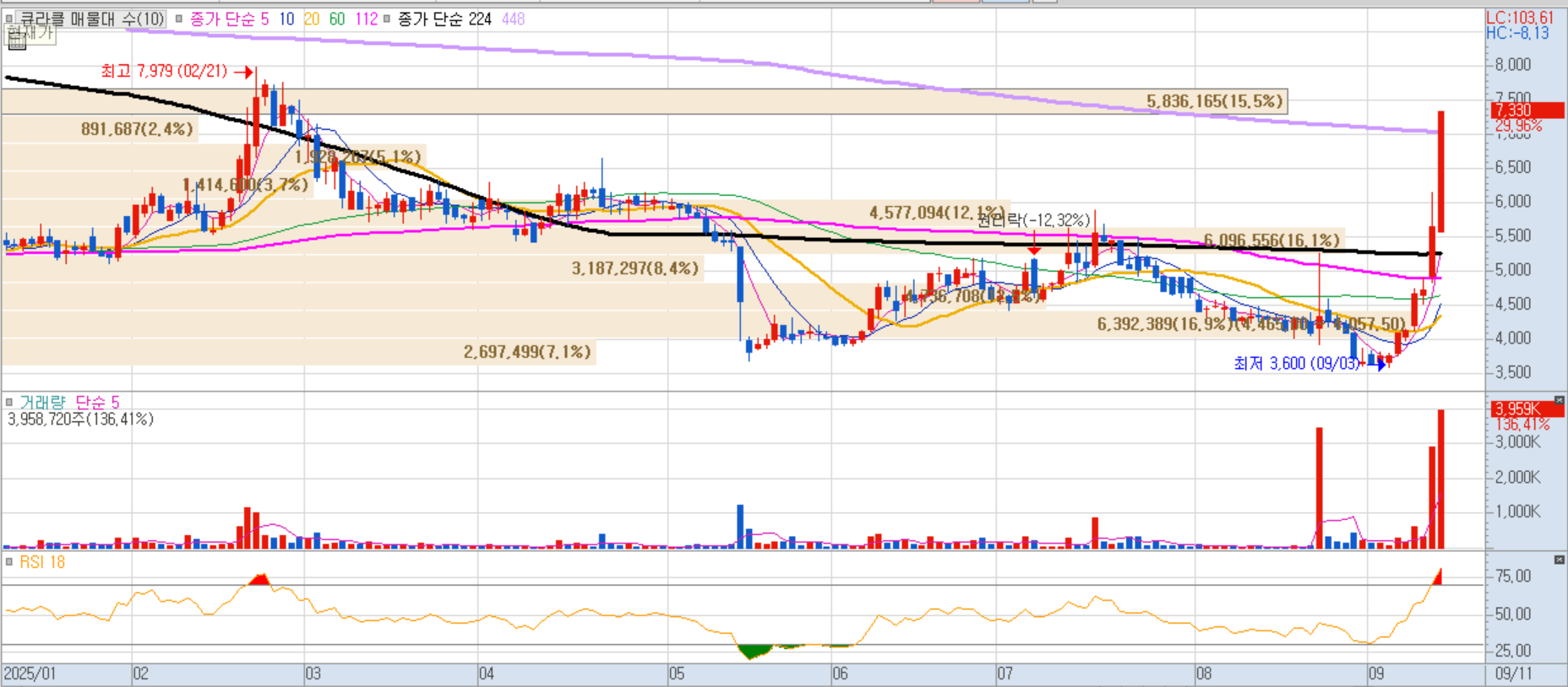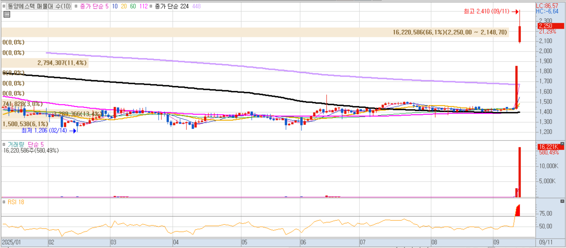 주주배정 유상증자와 일반공모 청약에서 흥행에 성공하며 청약률 4713.9%를 기록, 투자심리 고조에 따른 급등이 나왔습니다.