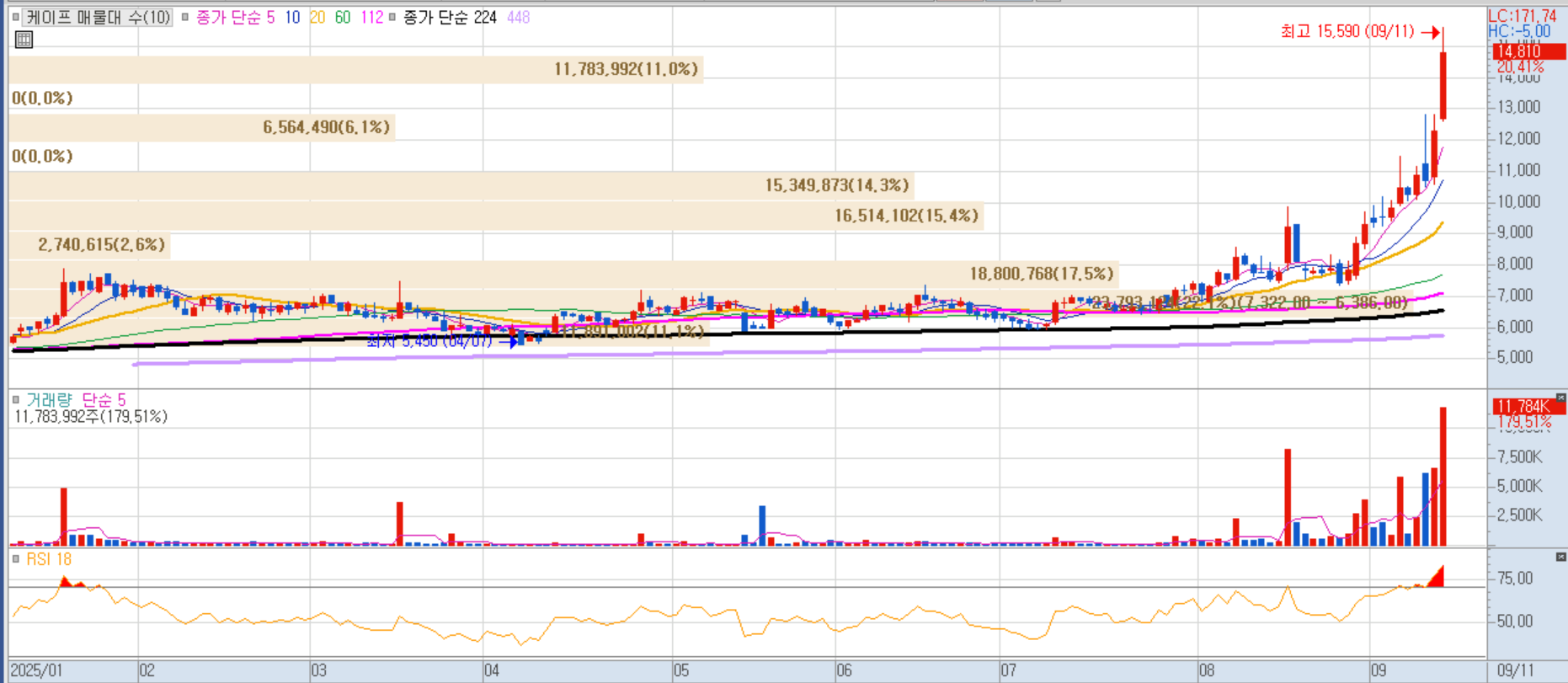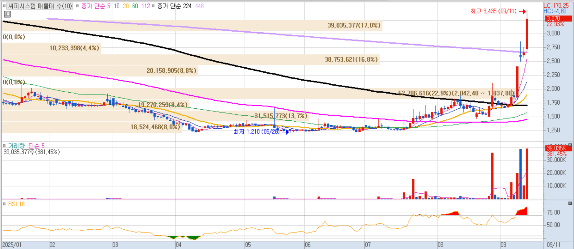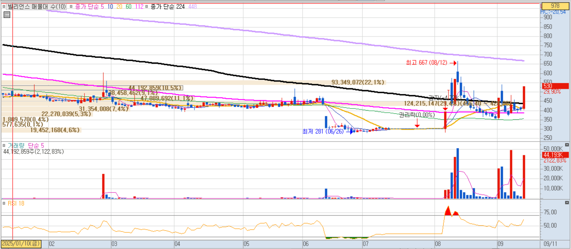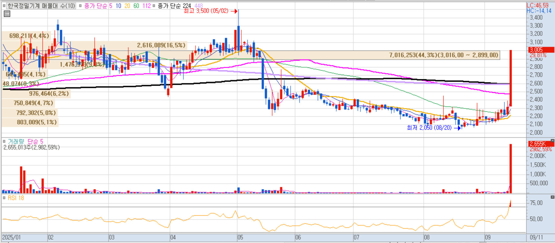 주주배정 유상증자와 일반공모 청약에서 흥행에 성공하며 청약률 4713.9%를 기록, 투자심리 고조에 따른 급등이 나왔습니다.