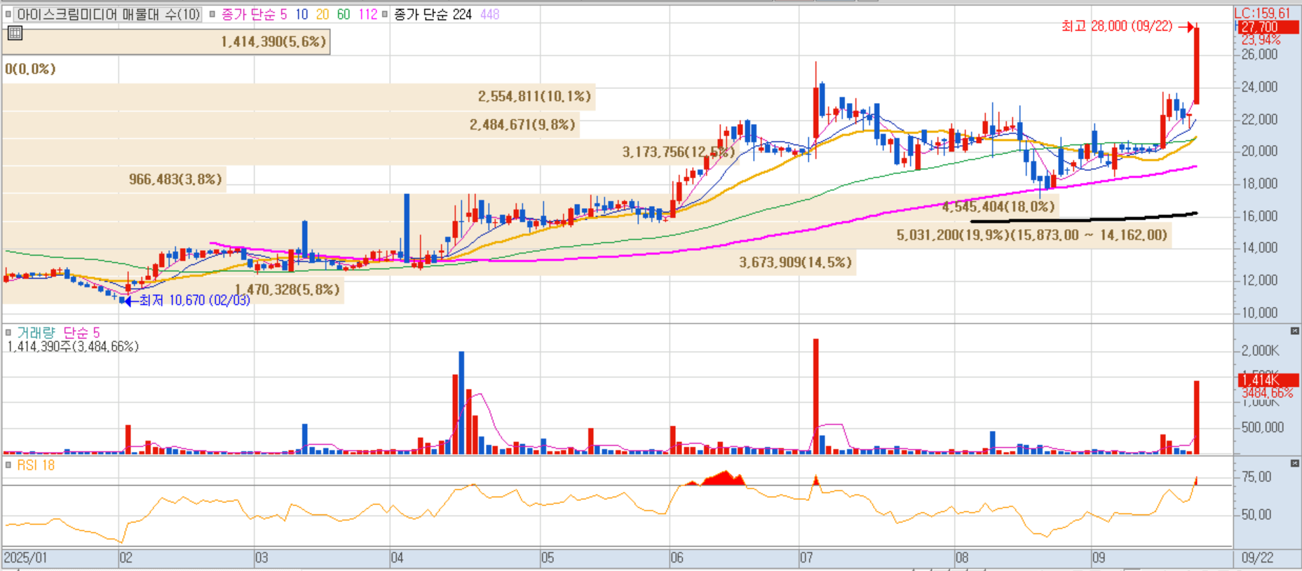 아이스크림미디어 일봉차트 이미지