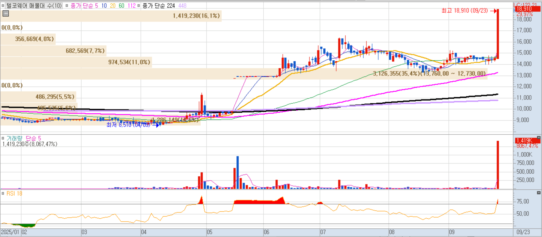 이동통신 핵심 코어망 솔루션을 제공하는 통신 인프라 전문 기업입니다. 국내 주요 통신사들과 지속적인 협업을 바탕으로 성장 중이며, 코어 네트워크 분야의 독보적 입지를 바탕으로 주가가 급등했습니다.