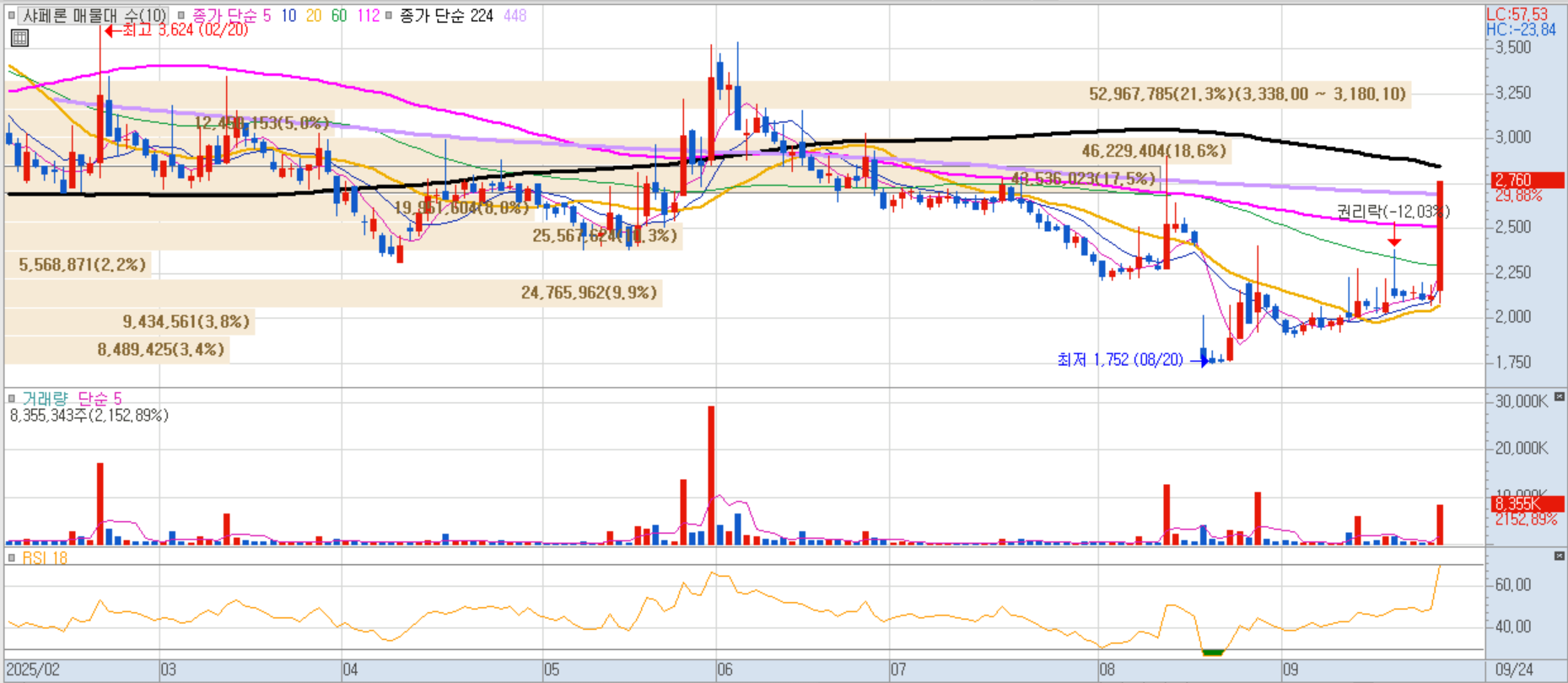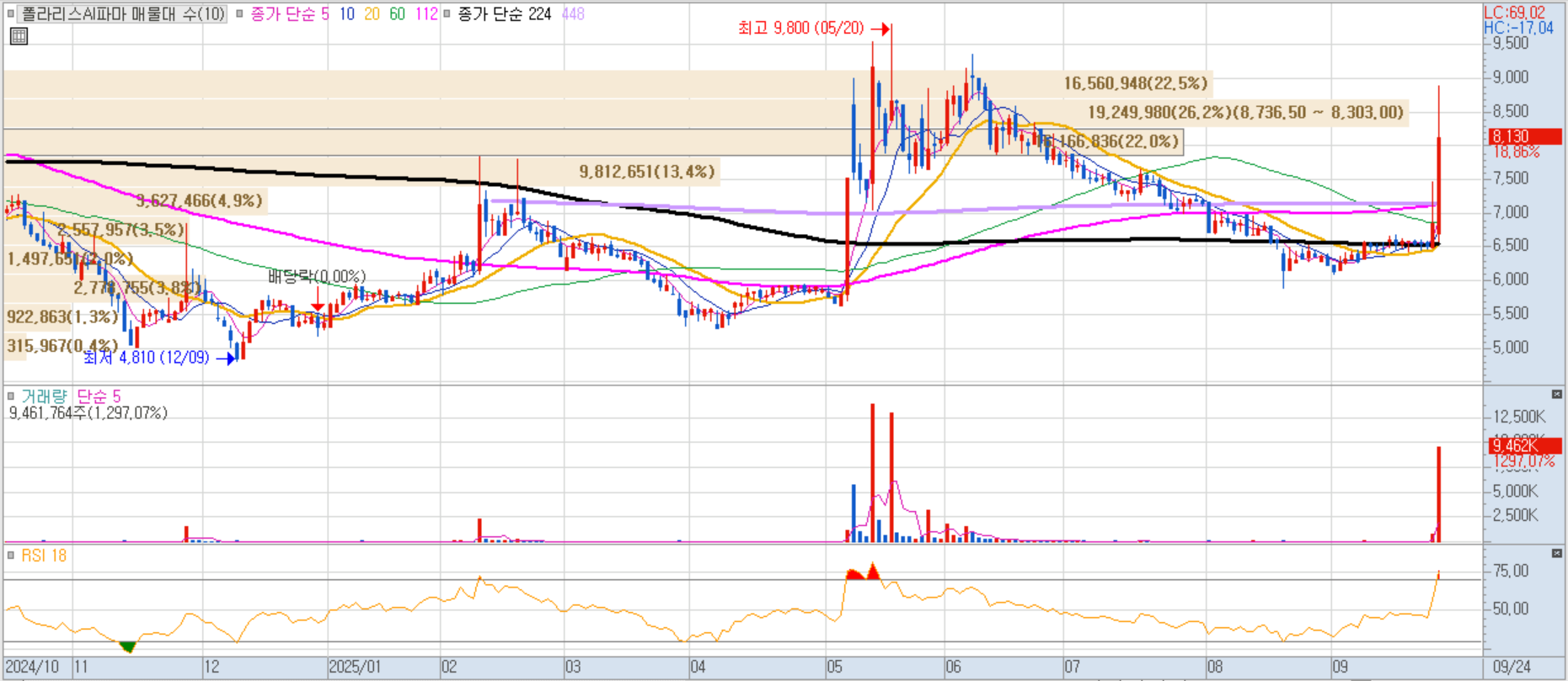 9월 19일 상장한 AI 빅데이터 분석 기업. 코스닥 진입 이후 연일 강세 지속.