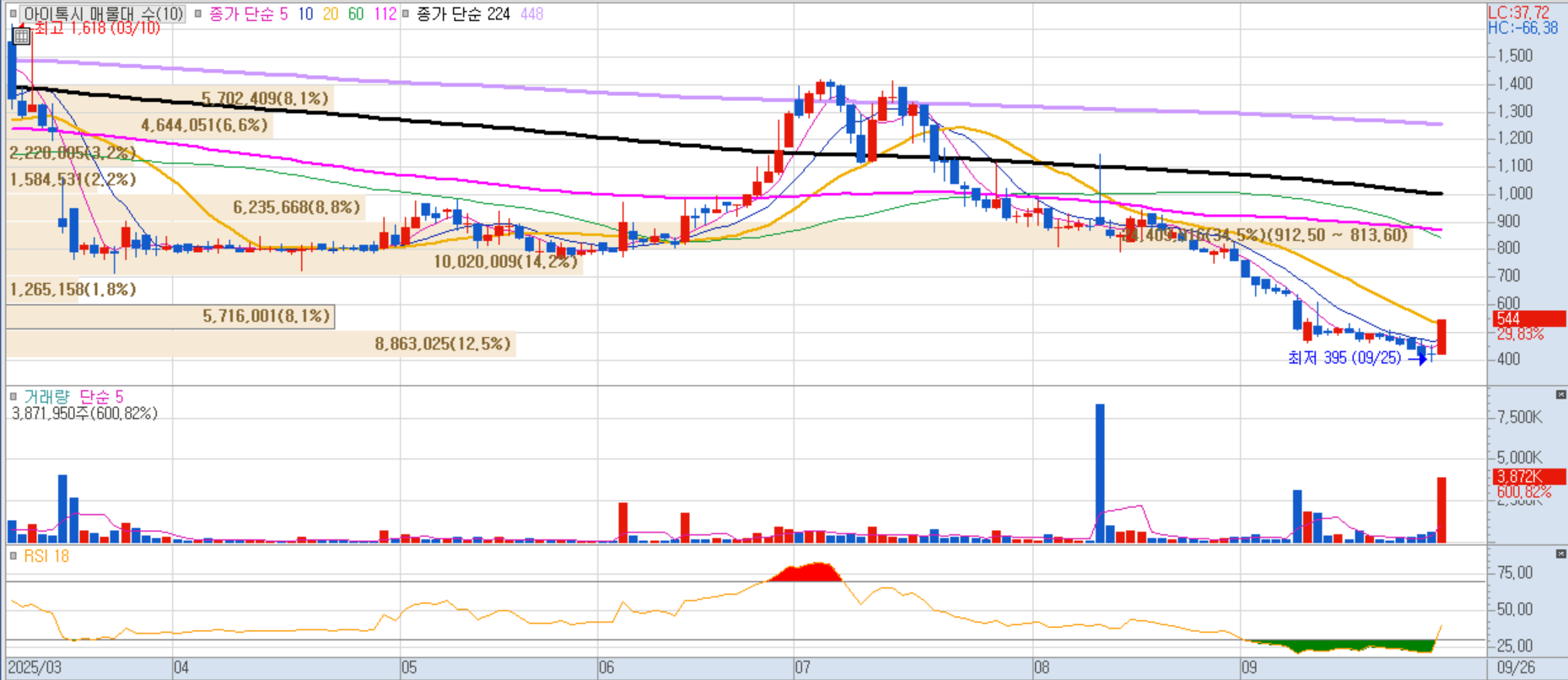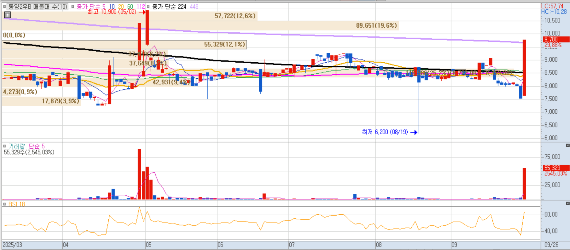 액면분할 결정으로 인해 거래량 급증, 투자자들의 관심이 집중되며 상한가 마감. 중소형 종목에선 대표적인 액면분할 이슈 수혜주.
