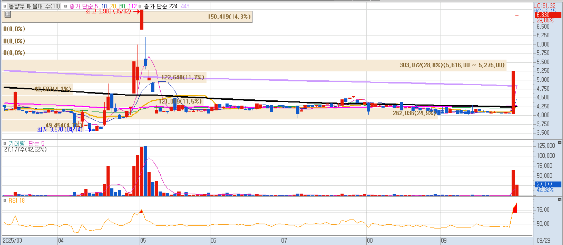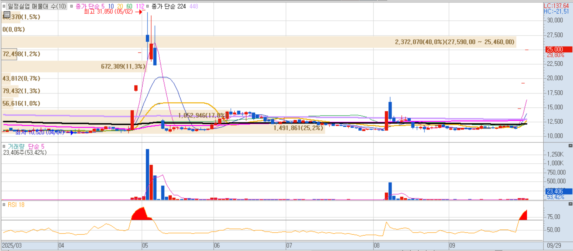뉴스 및 공시 없음. 건설, 플랜트, 시멘트 관련 사업군 중심의 건설주 순환매 수급 가능성.