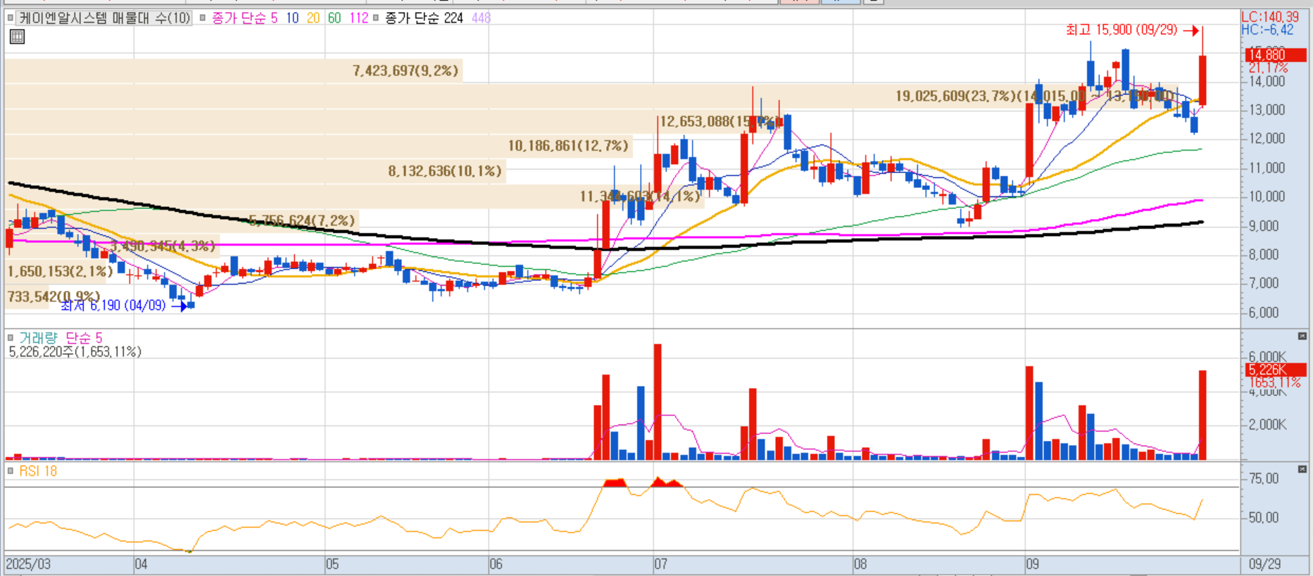케이엔알시스템 일봉차트 이미지