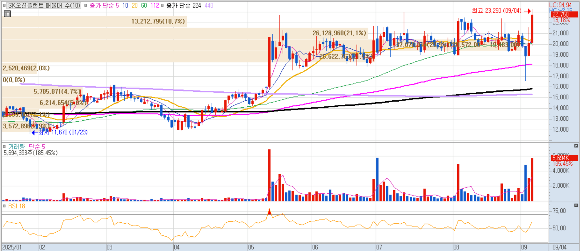 해상풍력 및 조선·해양 전문 기업. 실망 매물 이후 전략적 투자자(SI) 참여 소식이 전해지며 반등세 연출.