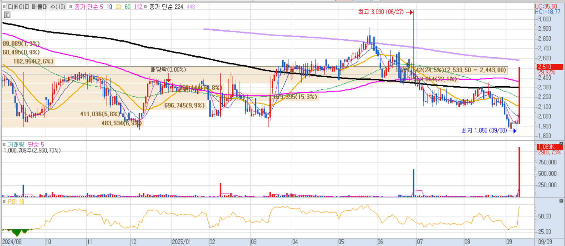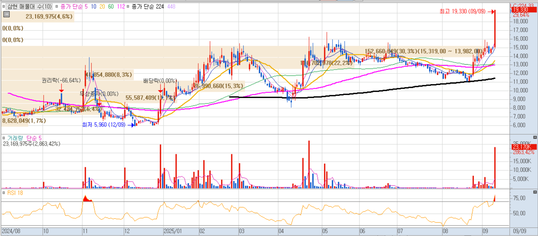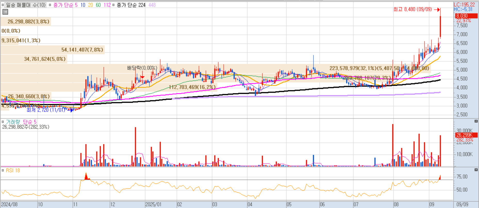 정리매매 종목으로 거래 종료 전까지 급등세를 보였습니다.