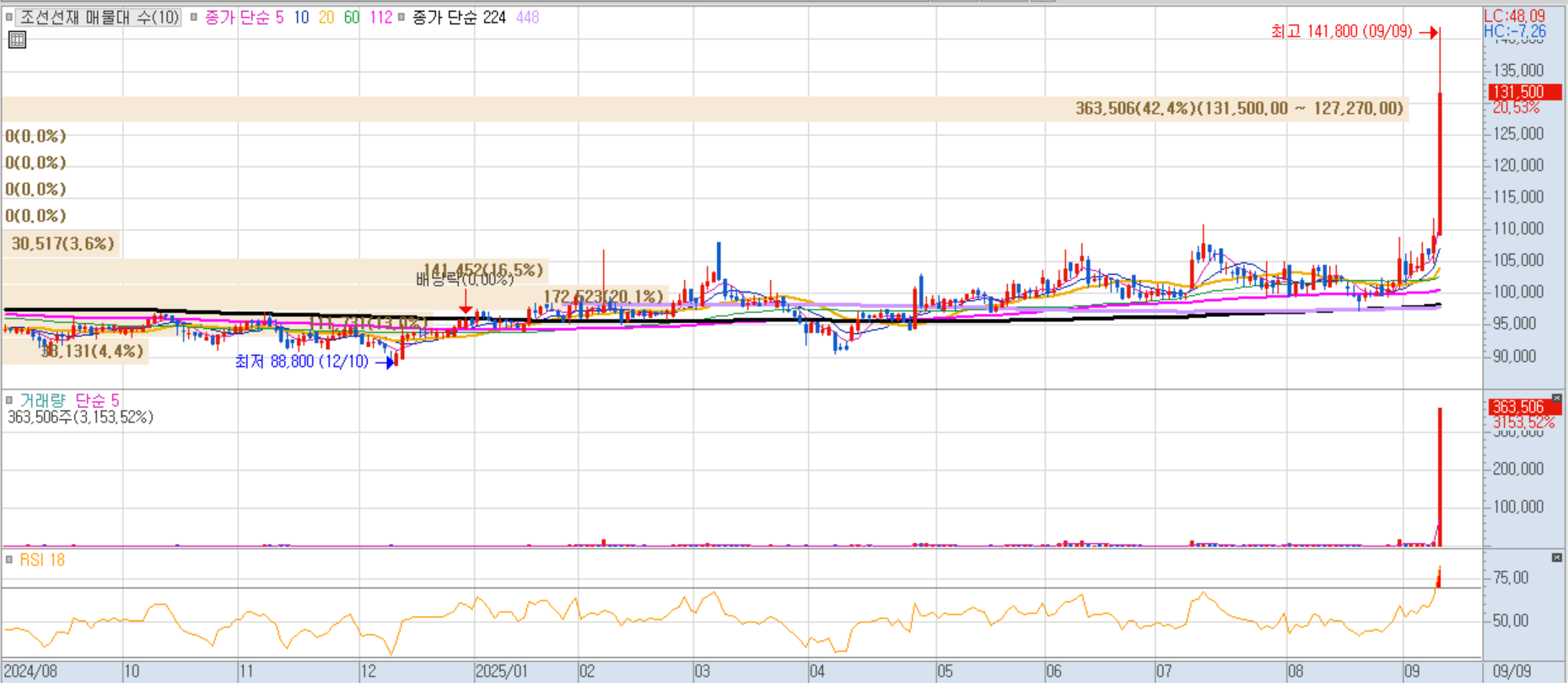 마스가(MASGA: 한미 조선 협력 프로젝트) 수혜 기대감이 이어지는 가운데, 대선조선의 미국 해군 MRO 사업 진출 이슈가 부각되며 주가가 급등했습니다.