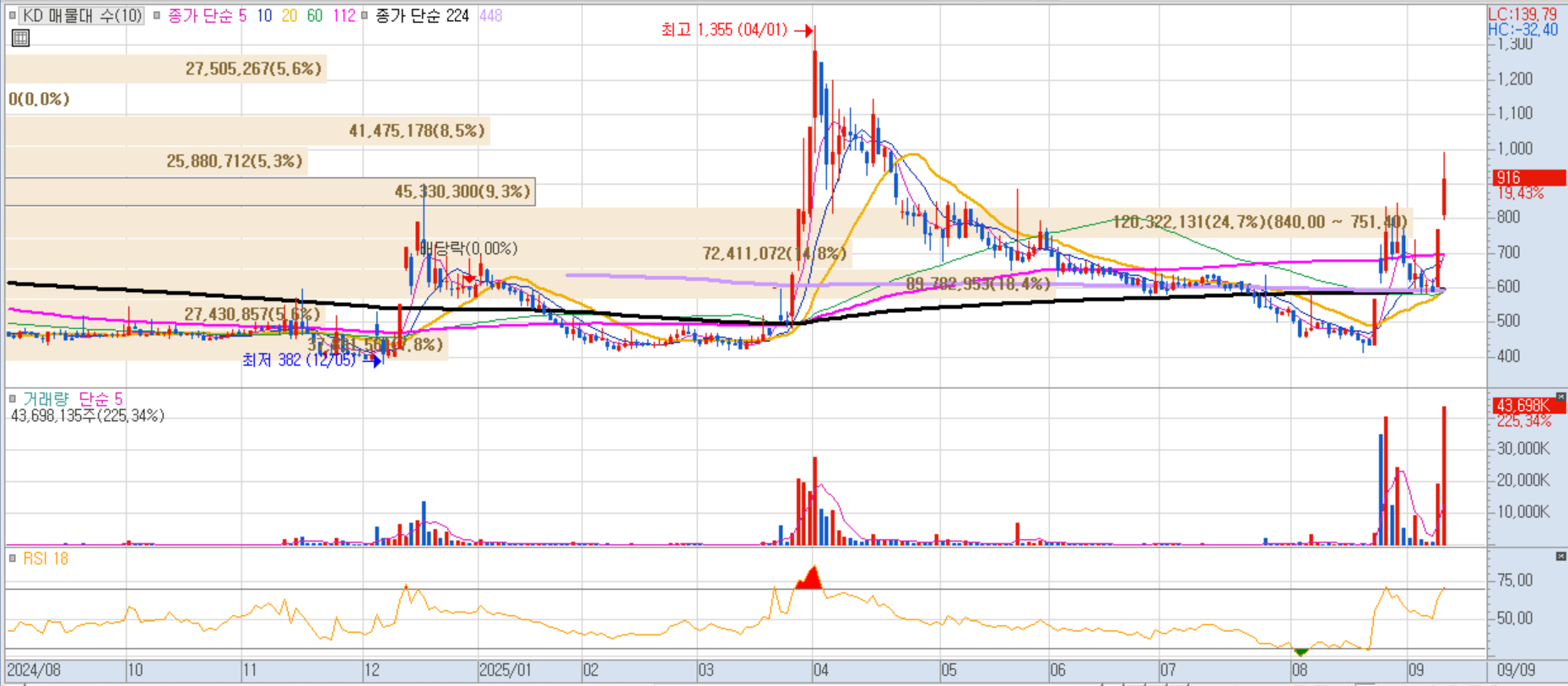 정부가 수도권에 135만호를 공공 주도로 신규 공급한다는 주택 공급 확대 정책을 발표하면서 건설주 강세. KD 역시 직접적인 수혜 기대감으로 급등세를 보였습니다.