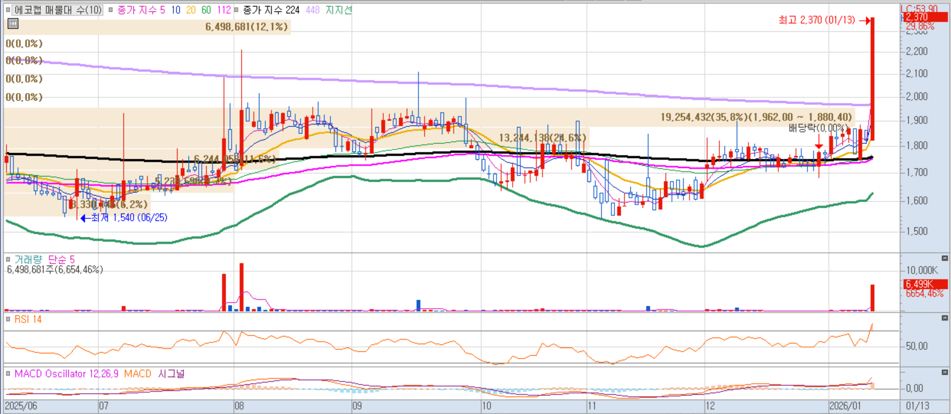 에코캡의 상승은 현대자동차가 몰고 온 상승력에 자동차부품주로 확대되며 상승한 것으로 분석됩니다. 에코캡은 자동차용 전선, 와이어링 하네스, 벌브 소켓, LED 모듈 등 핵심 전기·전자 부품을 전문적으로 생산하며 뛰어난 기술력을 인정받고 있다.