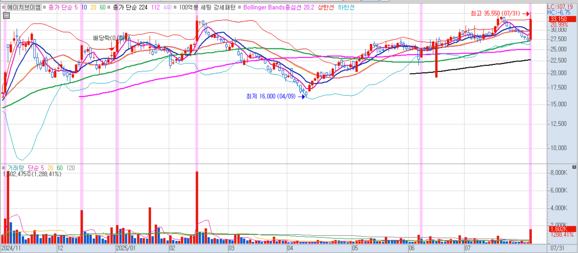 에이치브이엠 일봉차트 이미지