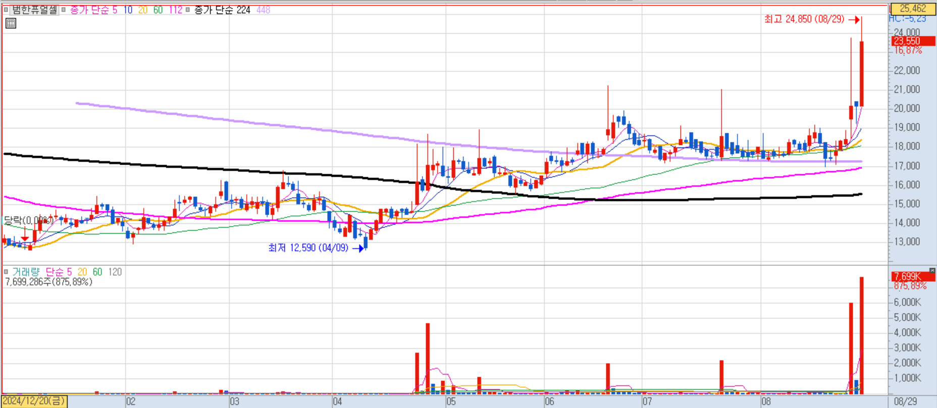전환청구권 행사 정정 공시 이후 신규 상장 주식에 대한 투자심리 강화로 매수세가 유입되었습니다. 전환주 수 증가 공시가 오히려 관심을 끌어 상승에 일조했습니다.