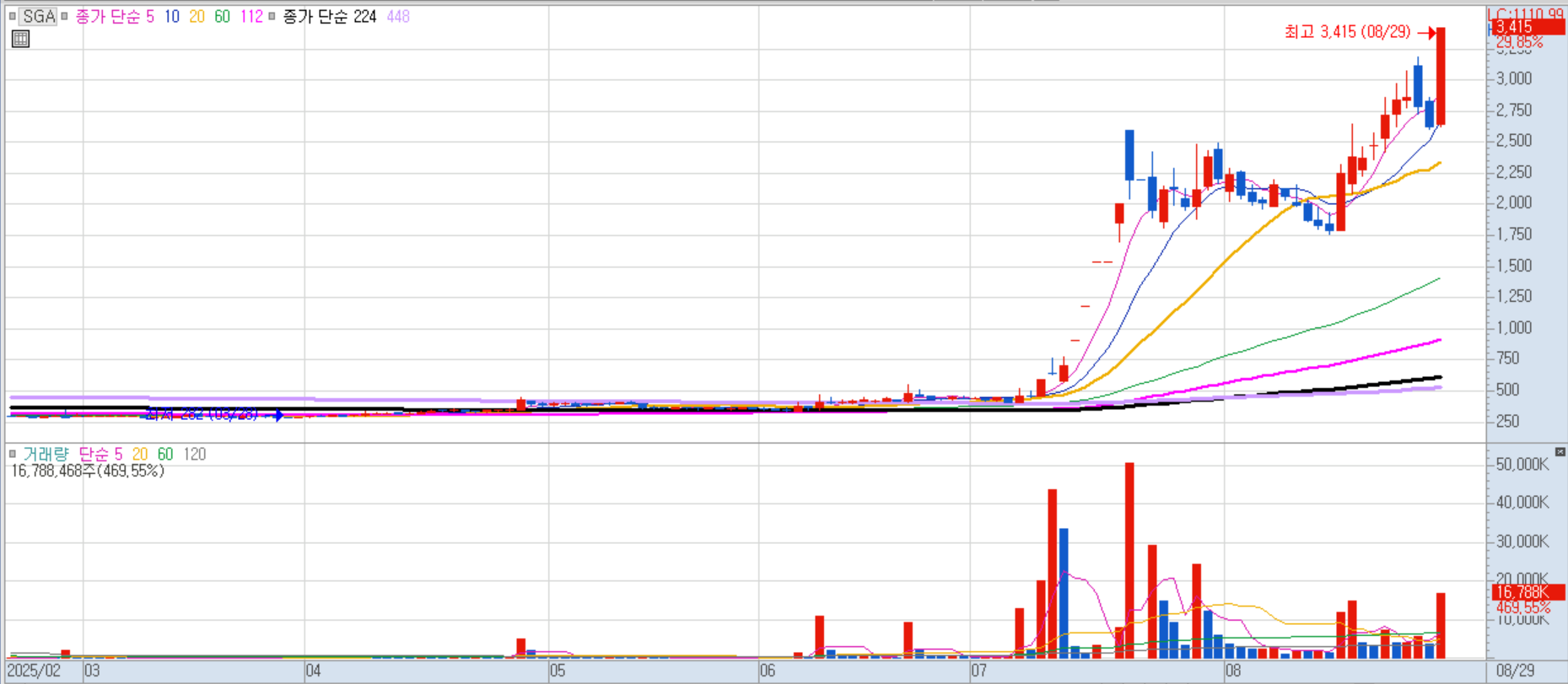 소라벤처스가 SGA의 사명을 '비트플래닛'으로 바꾸고 가상자산 투자 사업 진출을 선언하며 비트코인 테마가 형성되었습니다. 여기에 '강성부 펀드(KCGI)'가 SGA에 베팅한 정황도 공개되며 주가에 불이 붙었습니다.