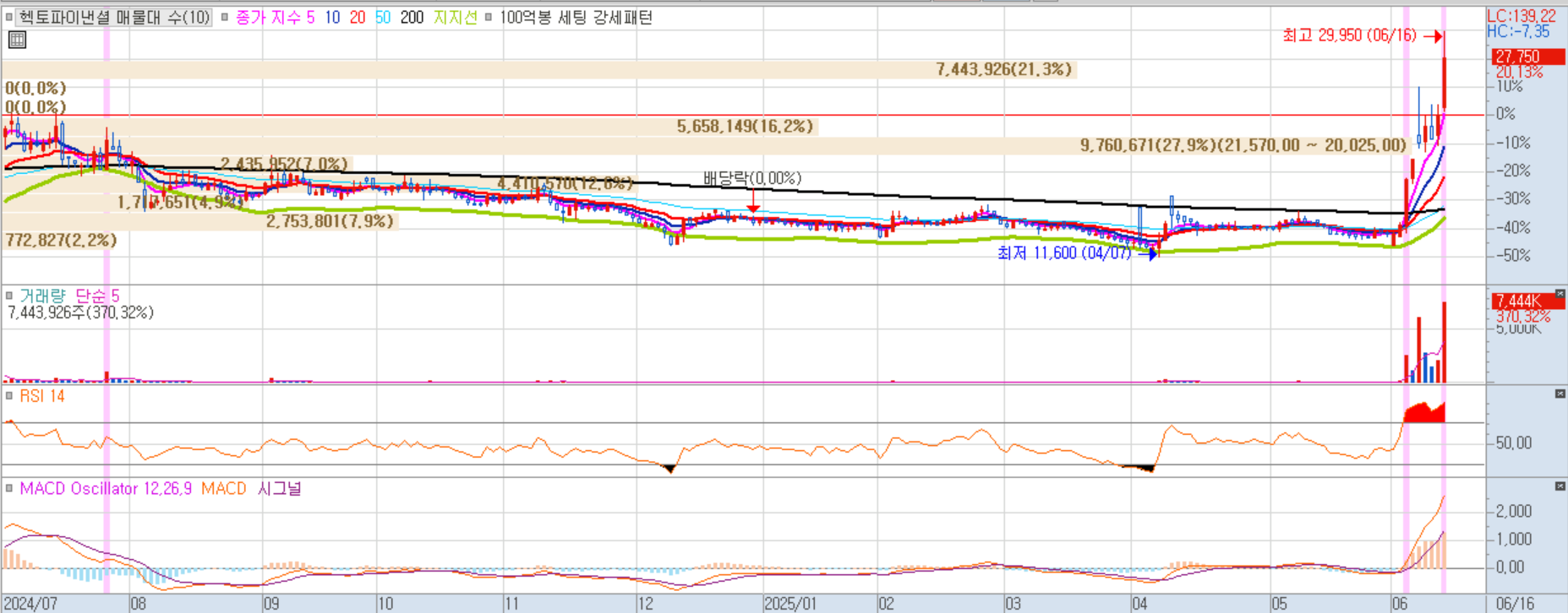 뉴스 및 공시 없이 테마성 거래 및 수급 이슈로 급등한 것으로 분석됩니다.
