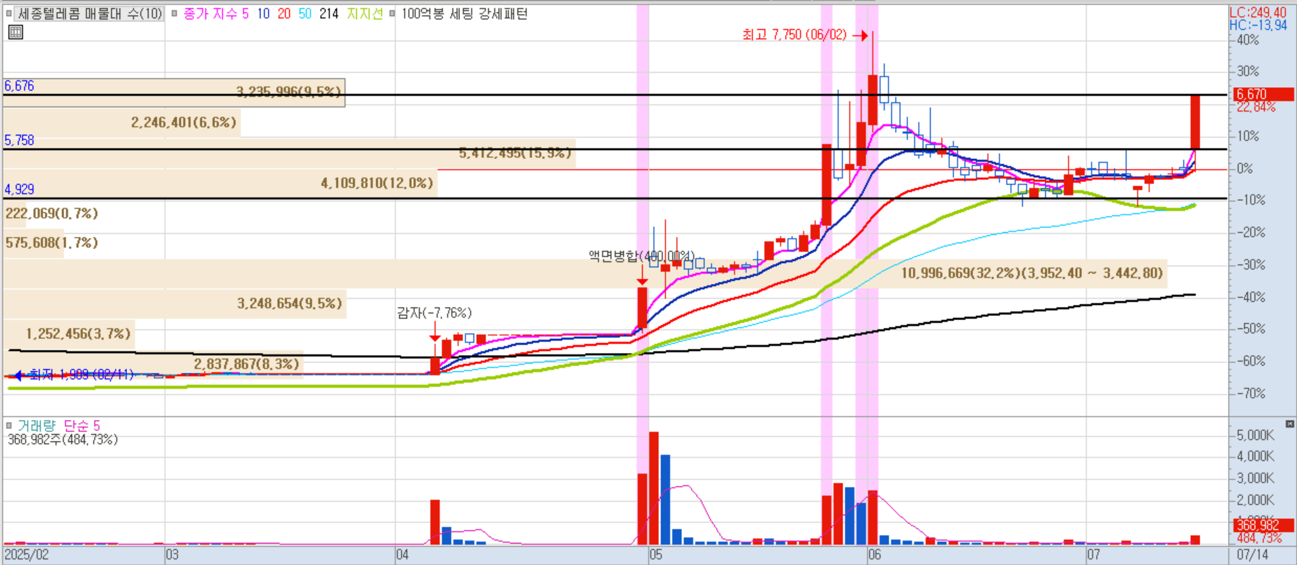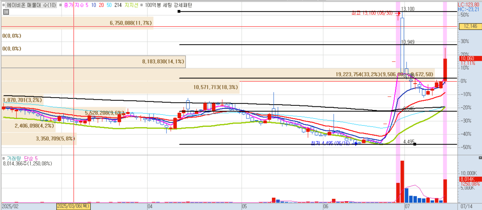 ✦ 상한가 및 급등 종목 분석