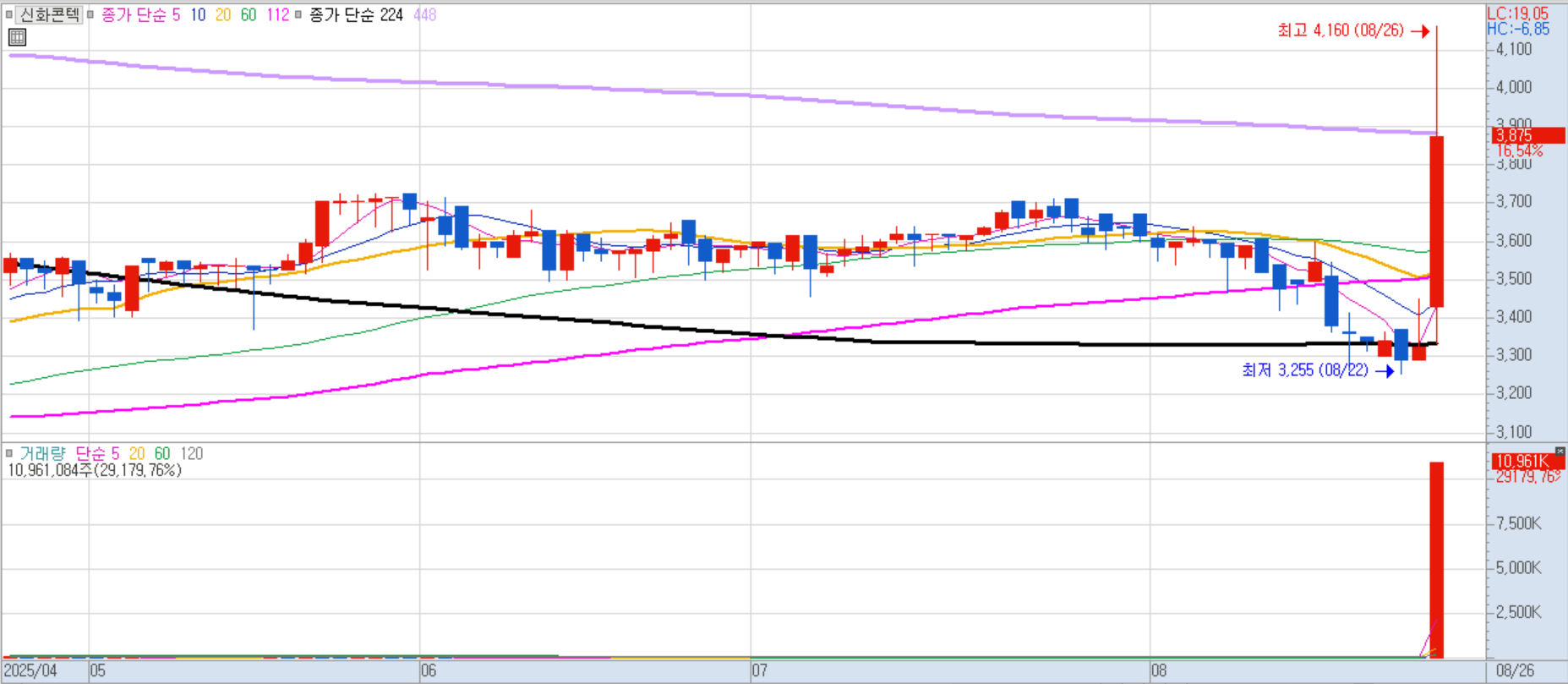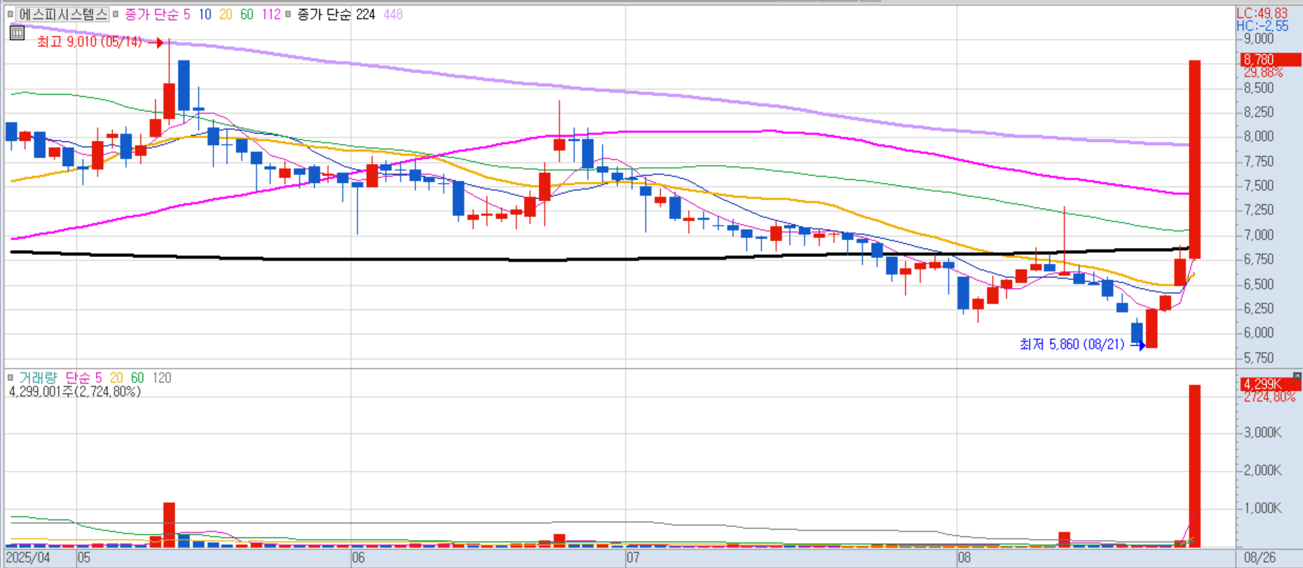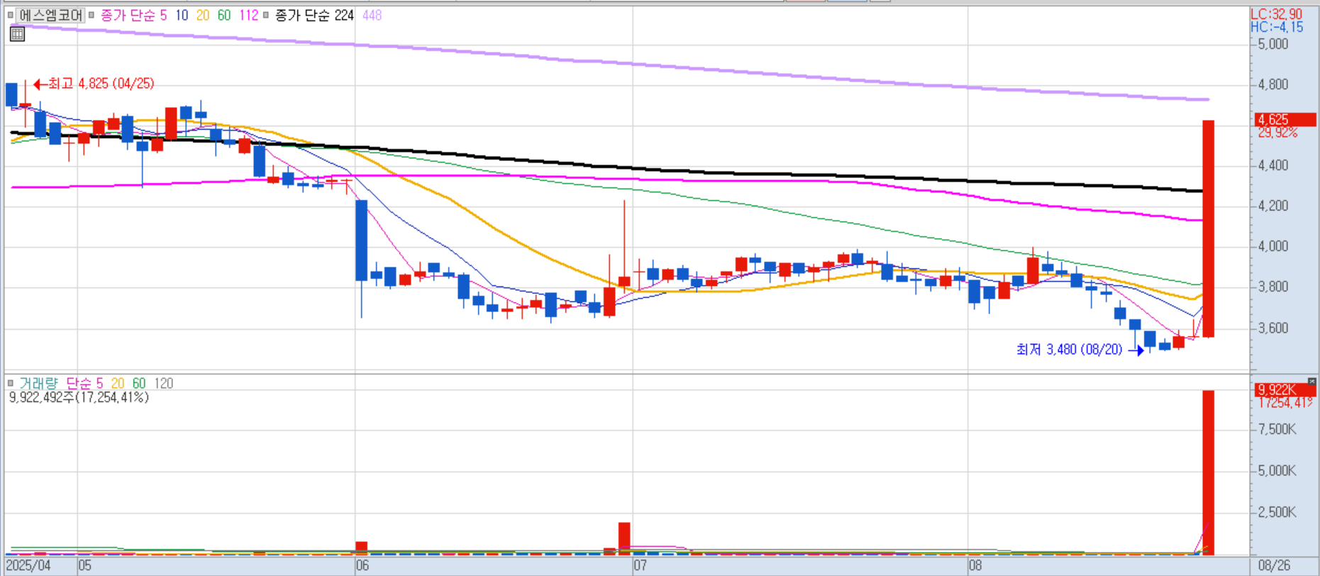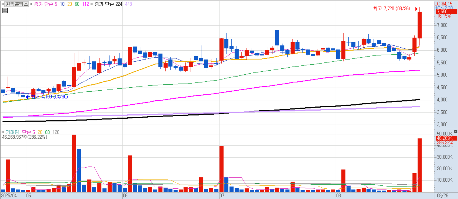8월 말~9월 초 발표 예정인 주택공급 대책에 대한 기대감으로 급등했습니다. 또한, 회사 대표가 이재명 대통령과 중앙대 동문이라는 점에서 정치 테마주로도 엮이며 관심을 받았습니다.
