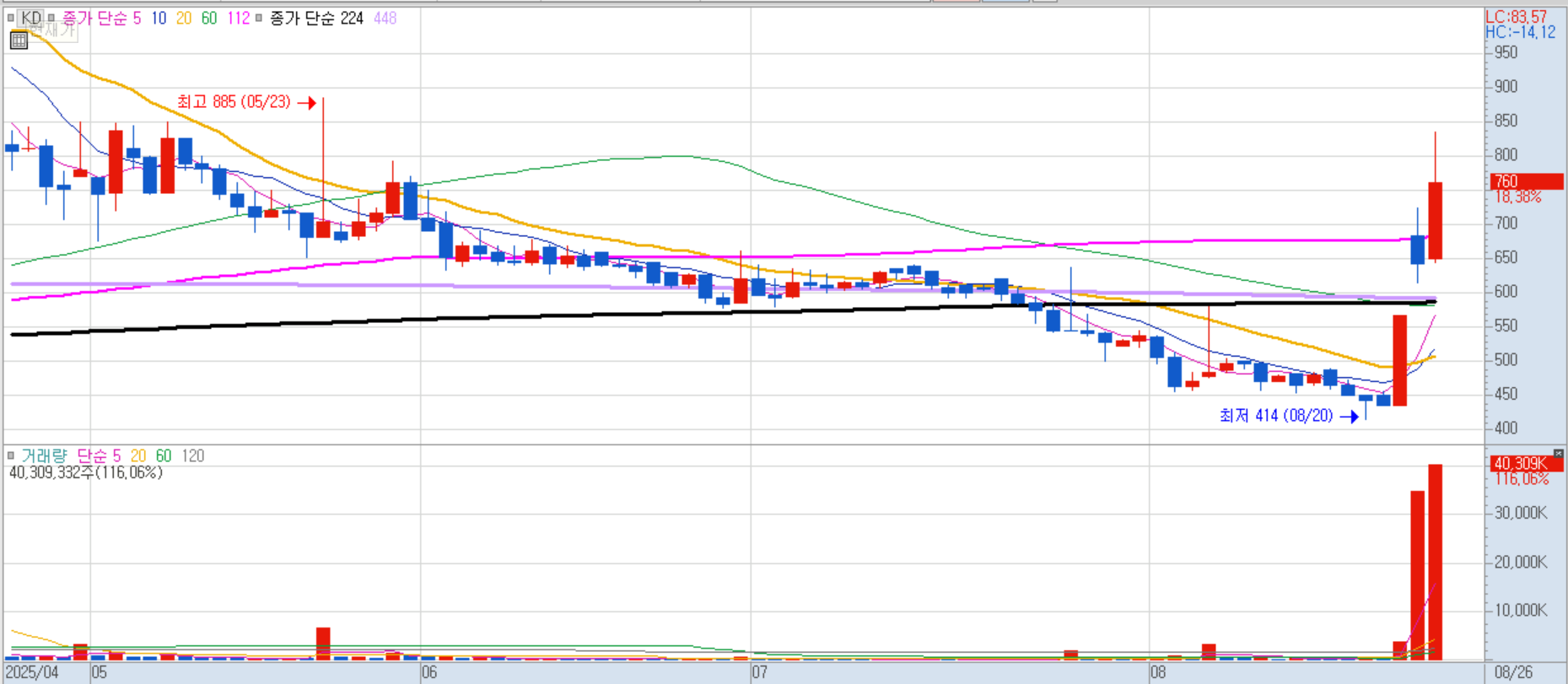 8월 말~9월 초 발표 예정인 주택공급 대책에 대한 기대감으로 급등했습니다. 또한, 회사 대표가 이재명 대통령과 중앙대 동문이라는 점에서 정치 테마주로도 엮이며 관심을 받았습니다.