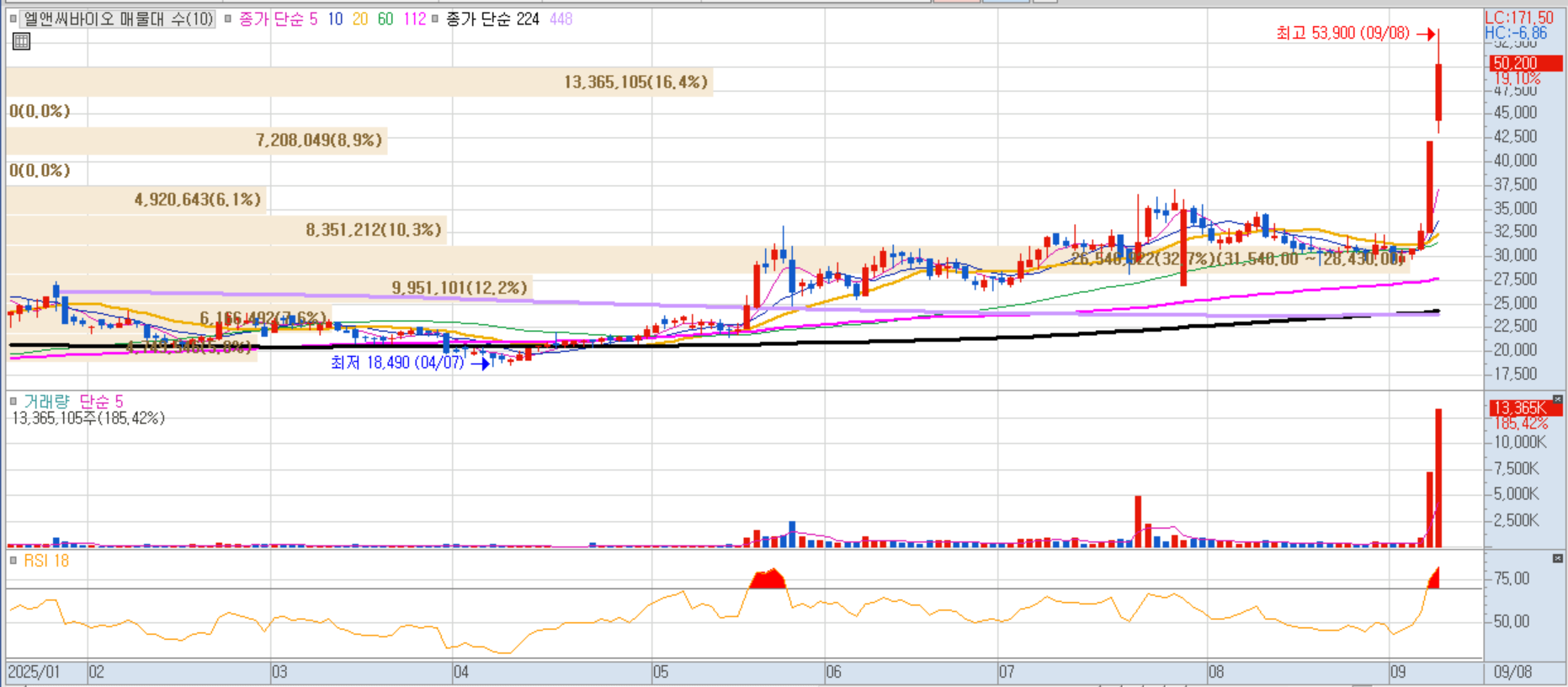 앨엔케이바이오 일봉차트 이미지