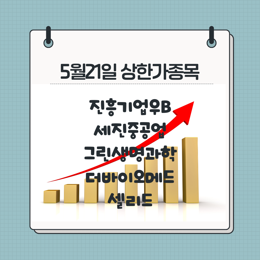 #5월21일상한가 #진흥기업우B #세진중공업 #셀리드 #코로나테마주 #조선기자재 #진단키트 #주택재건축 #바이오이슈 #머니마그넷